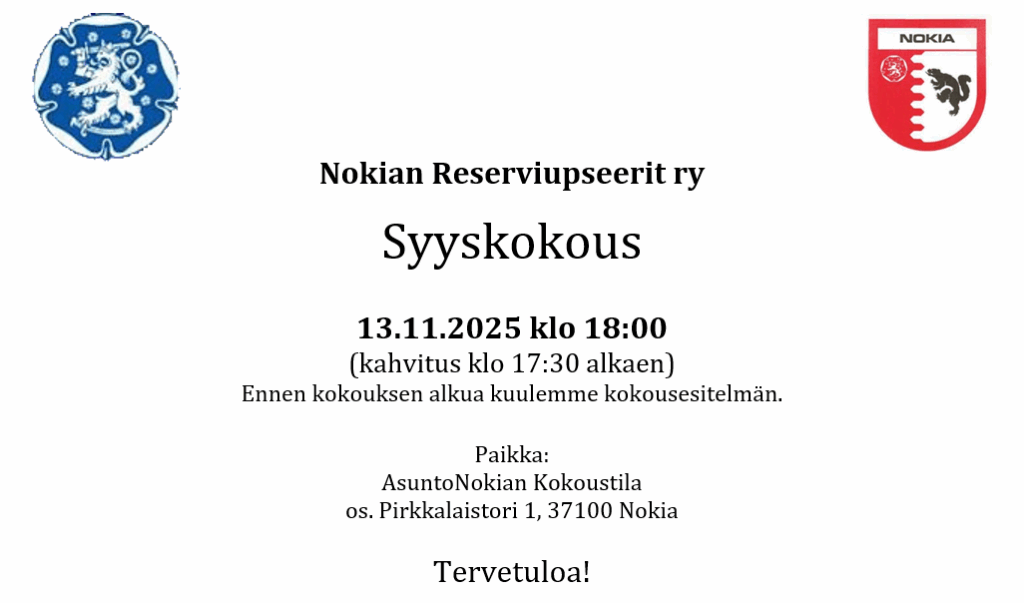 Tervetuloa Nokian Reserviupseerit ry:n kotisivulle