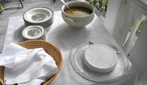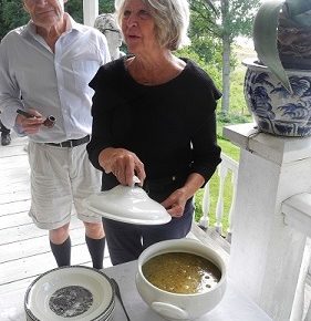 Värdinnan Karita serverar Fransk löksoppa