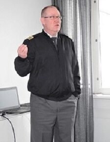 Innan mötet höll kommendör Toni Joutsia från försvarsministeriet ett intressant föredrag: Puolustusselonteko ja kokonaisturvallisuus.