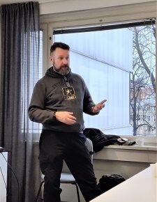 - Dagen började med att kommendören för Nylands brigad kommodor Juha Kilpi stannade på sin morgoncykeltur för att hälsa oss välkomna i Syndalen och berätta kort om aktualiteter.