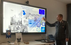 Innan mötet höll kommendör Toni Joutsia från försvarsministeriet ett intressant föredrag: Puolustusselonteko ja kokonaisturvallisuus.
