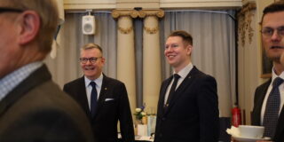 Liiton uusi puheenjohtaja Tuomas Kuusivaara luovutti Suomen reserviupseeriliiton 11. pienoislipun liiton entiselle puheenjohtajalle Aaro Mäkelälle kiitoksena kuuden vuoden erinomaisesta työstä