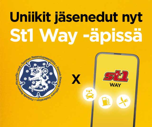 Kannustamme lataamaan St1 Way -sovelluksen, sillä sen edut ovat paremmat kuin perinteisen jäsenkortin edut. Löydät koodin lokakuun RUL Uutiskirje 10/2025-viestistä, joka on lähetetty 1.10. sähköpostilla kaikille niille jäsenille, joilla on toimiva sähköpostiosoite Maanpuolustusrekisterissä ja jotka eivät ole asettaneet kieltoja (esimerkiksi markkinointikieltoa) tai jotka eivät ole poistuneet postituslistalta.
