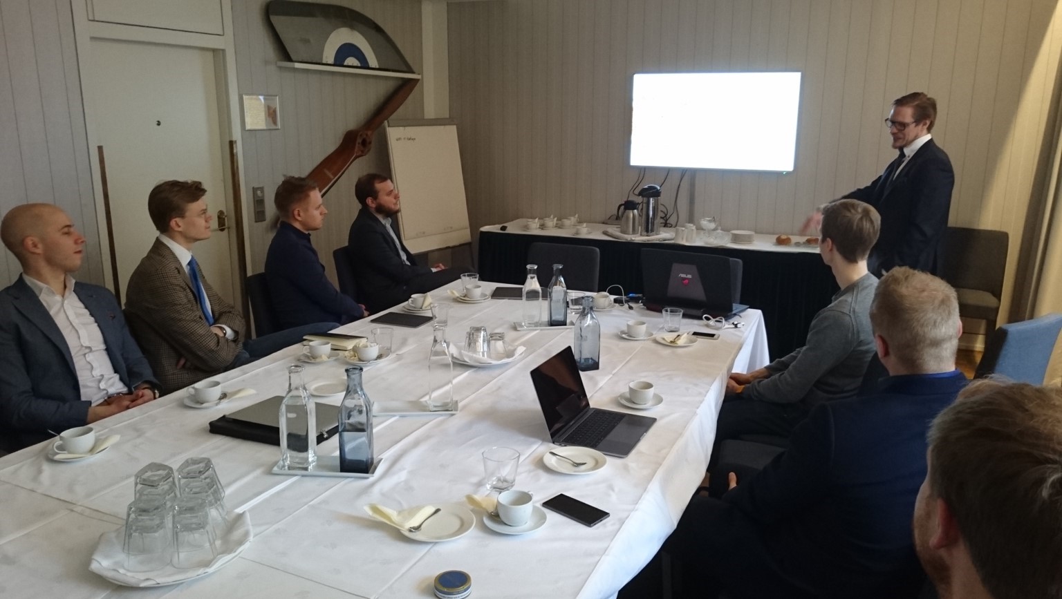 Kuva: Richard Lundell. Christoffer Wiklund pitää kiinnostuneille yhdistyksen jäsenille esitelmän sotilaslääketieteen historiasta ja sen kehityksestä moderniin tieteeseen perustuvaan muotoonsa.