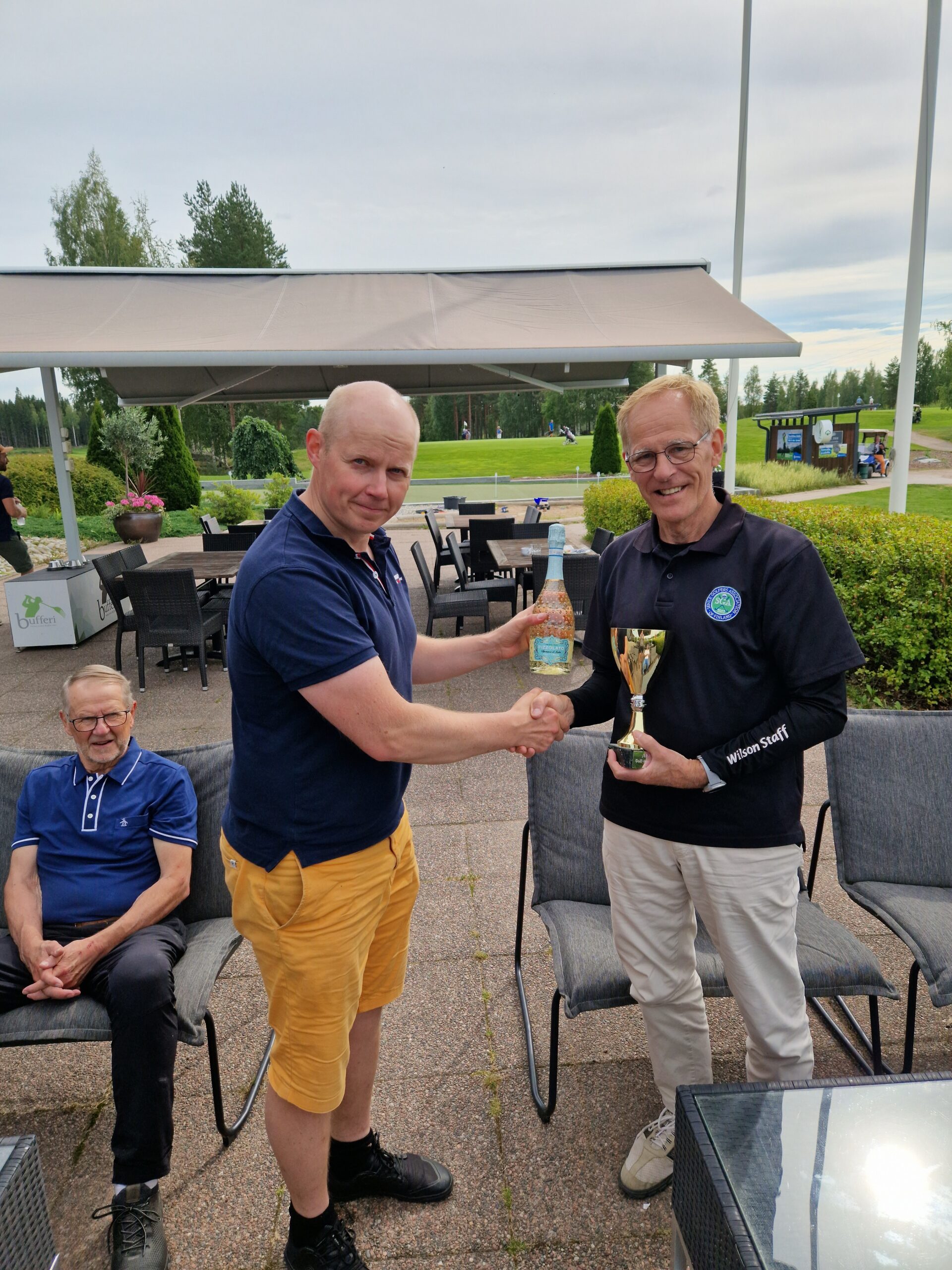 - Ansioristiä luovuttamassa Markku Lapinleimulle Jukka Yrjölä