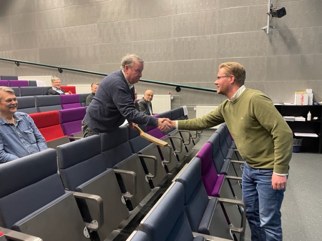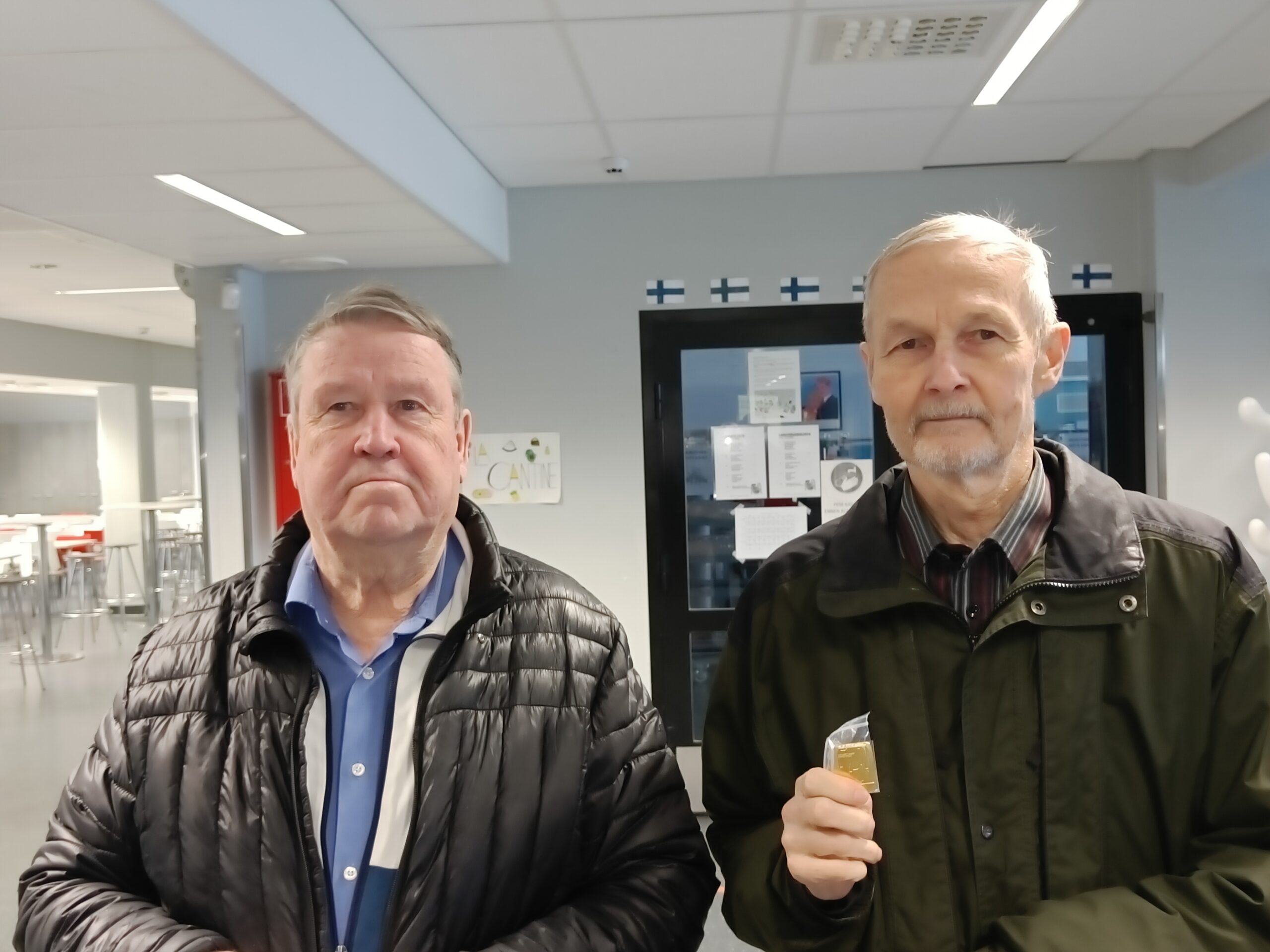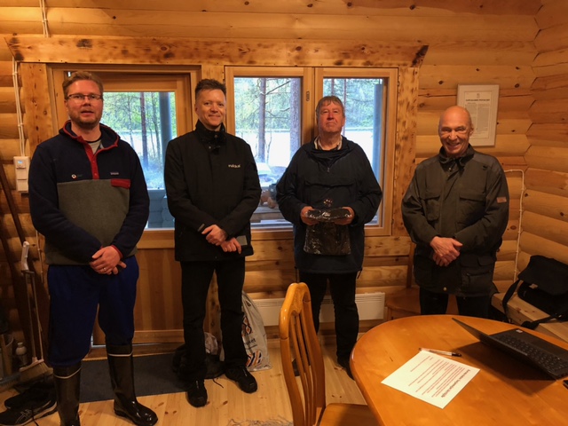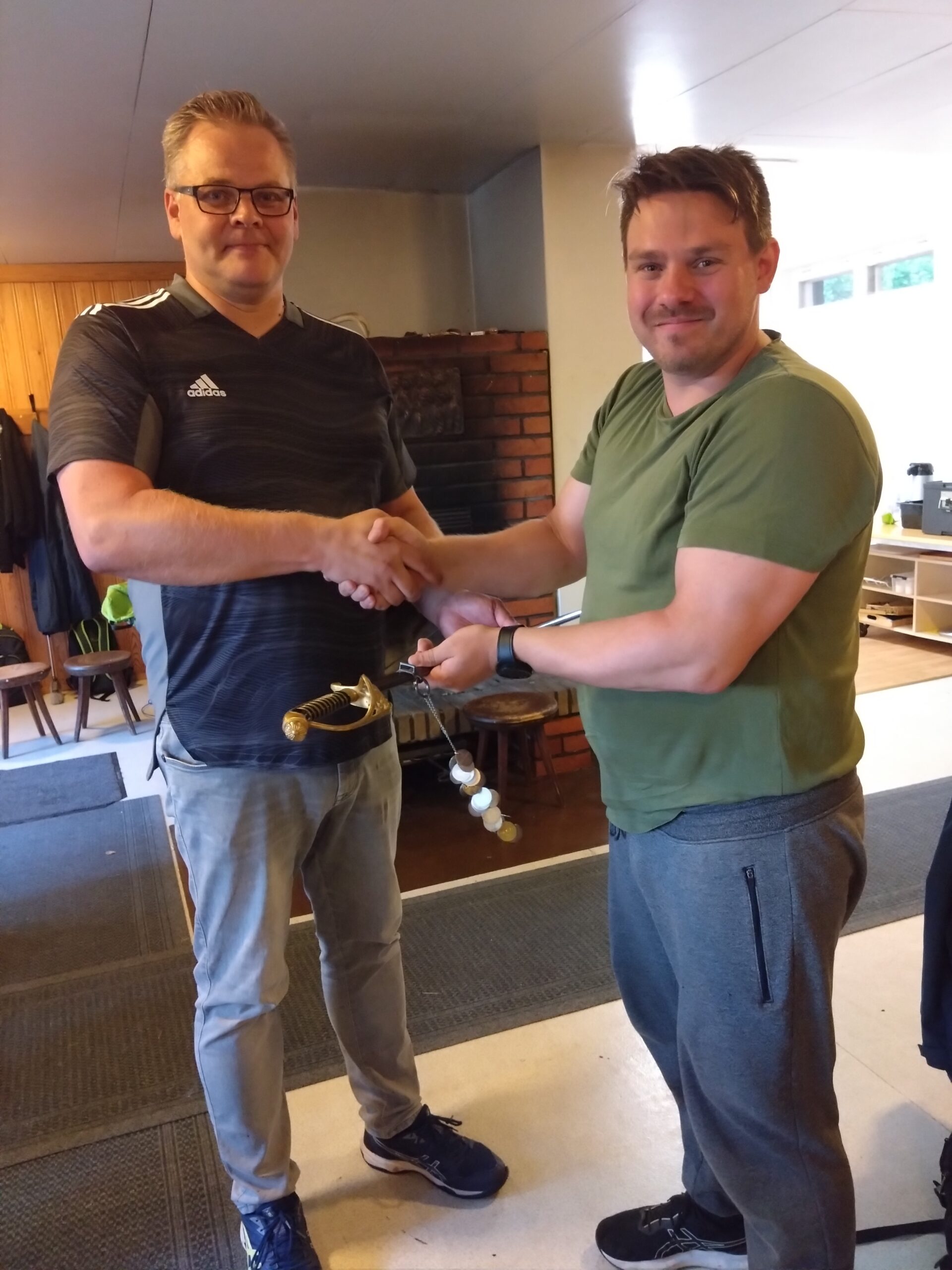 Kokouksen päätteeksi oli viime vuoden palkitsemisten aika. Nuorten palkinnolla on tapana ollut olla kadoksissa palkintojen jaon aikana. Viime vuonna saatiin kiertopalkinnoksi Pentti E.J. Uotilan lahjoittama iso tykin ammuksen hylsy ajatuksella ettei katoaminen ole kovin yksinkertaista. Sen verran tälläkin kertaa oli jännitystä ilmassa, kun Jari Rantanen kertoi palkinnoista esitetystä valokuvasta, että siitä puuttuu nuorten palkinto. Varapuheenjohtaja Petteri Jyrämö kuitenkin vapautti kuulijat kertomalla, että hylsy oli ollut kaiverrettavana palkintopöydän kuvaamisen aikana.
