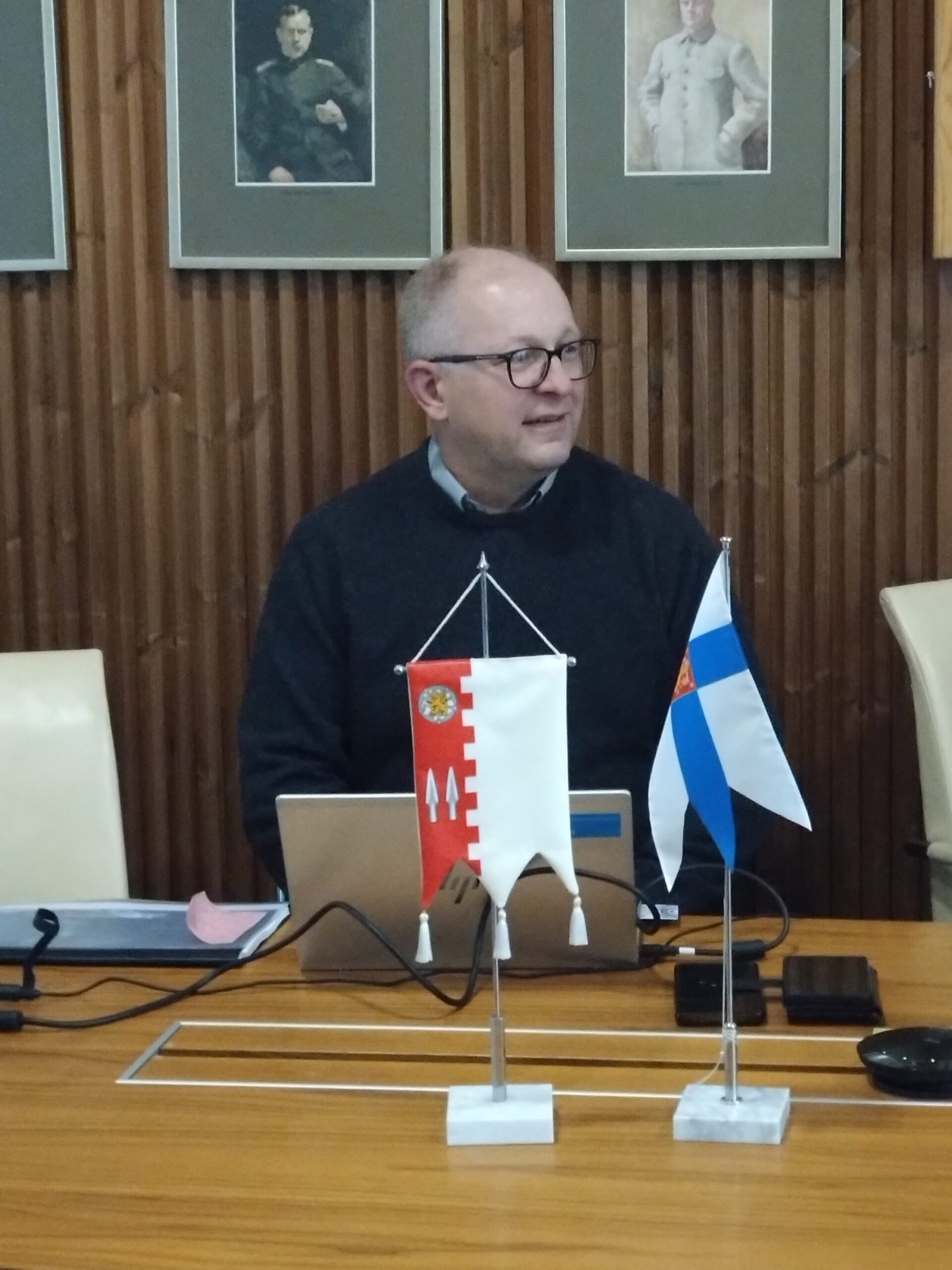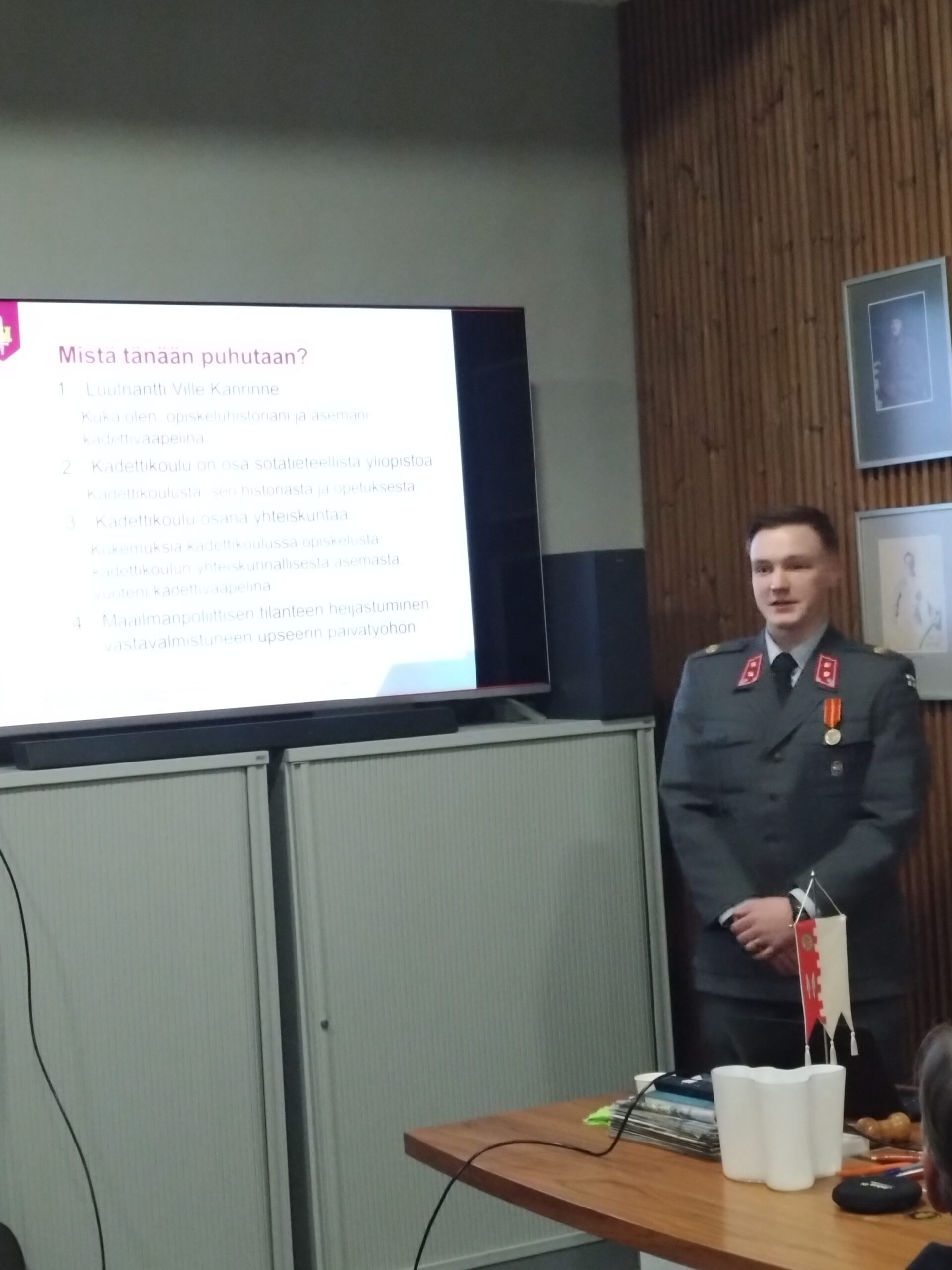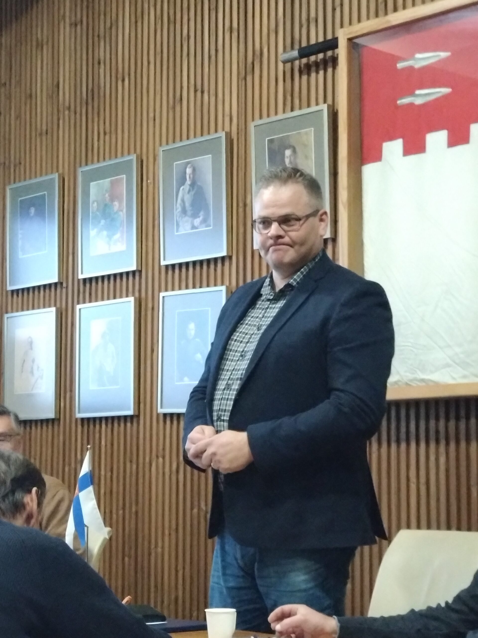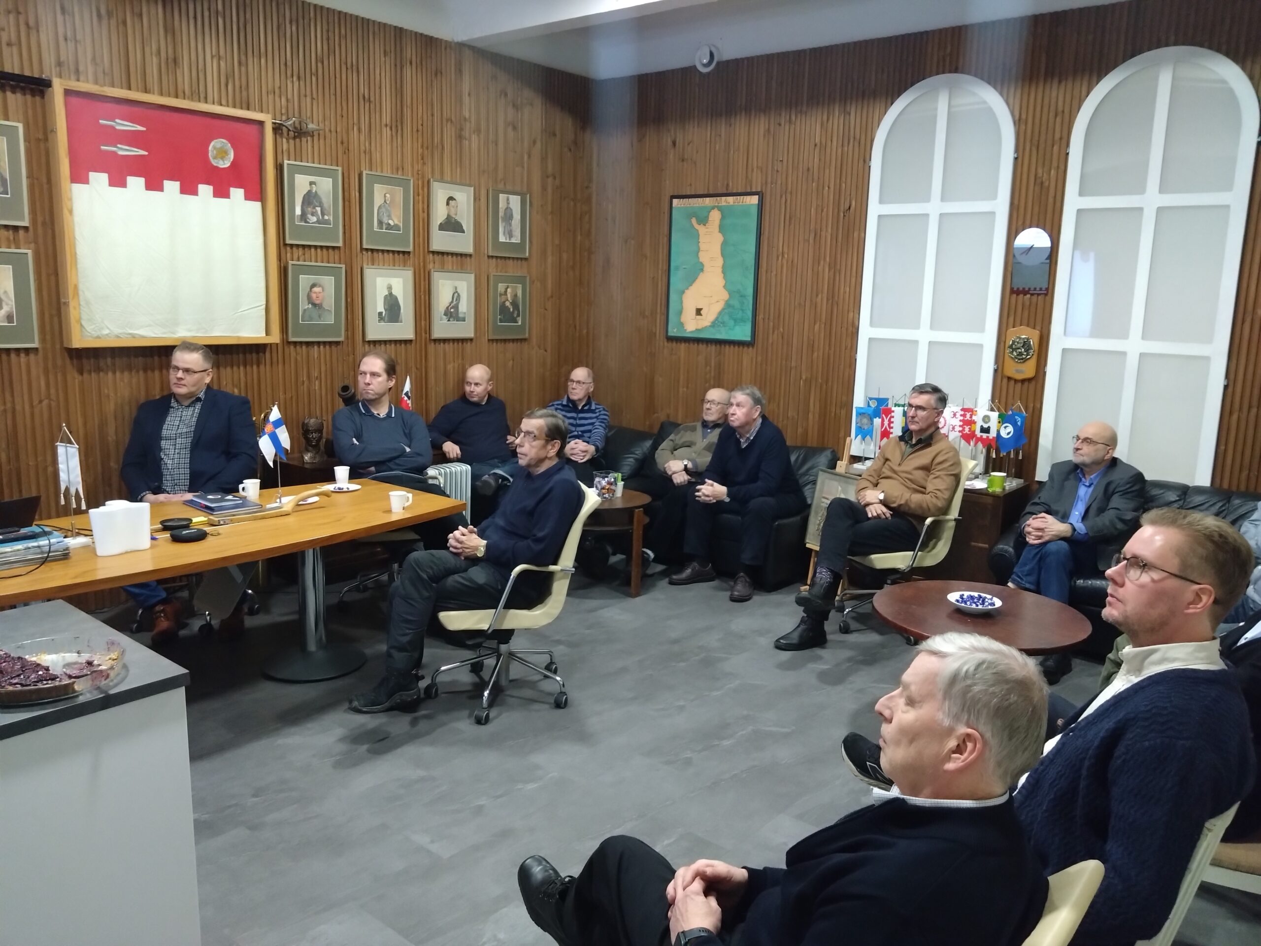 Perinteisen syyskokouksen yhteydessä marraskuussa saimme kokouksen alkuun esitelmän pitäjäksi eversti Vesa Tuunaisen. Saimme aimoannoksen tietoa ajankohtaisista aiheista kotimaasta ja ulkomailta.
