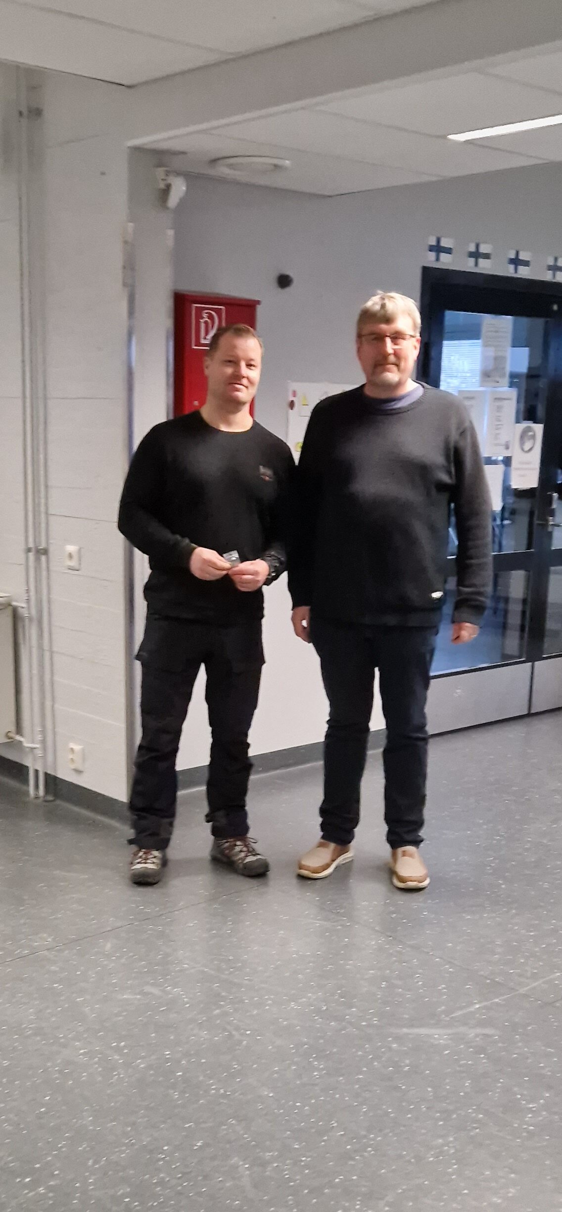 Voittajien on helppo hymyillä.vasemmalla ammuntarastin suunnittelijat ja kilpailun vetäjä Sami.