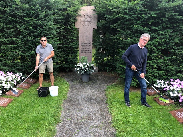 Seppeleen laskijoina toimivat Toijalan Seudun Sotainvalidit ry:n puheenjohtaja Juha Vuorinen ja kerhomme jäsen Markku Lapinleimu (vas.).