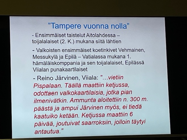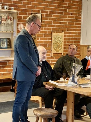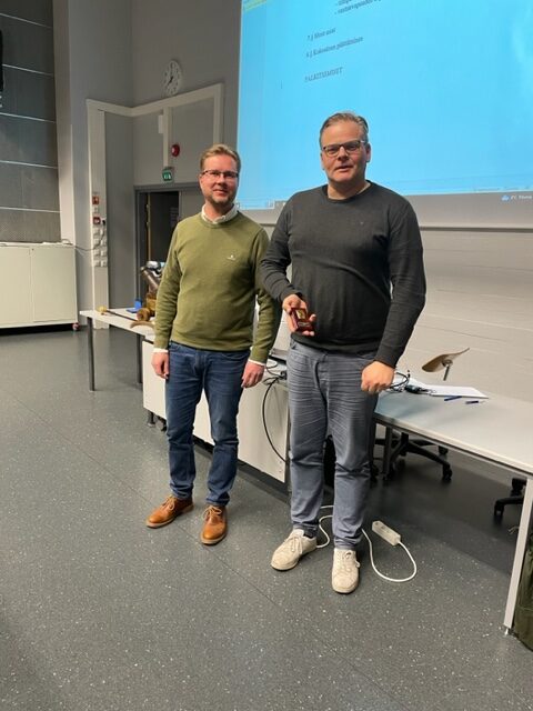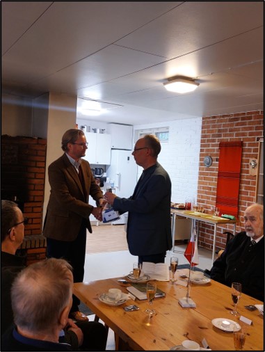 Kiitoksena esitelmän pitäjälle puheenjohtaja Jari Rantanen lähetti käsinkirjoitetun kirjeen ja ”Ote pitää”-puukon: