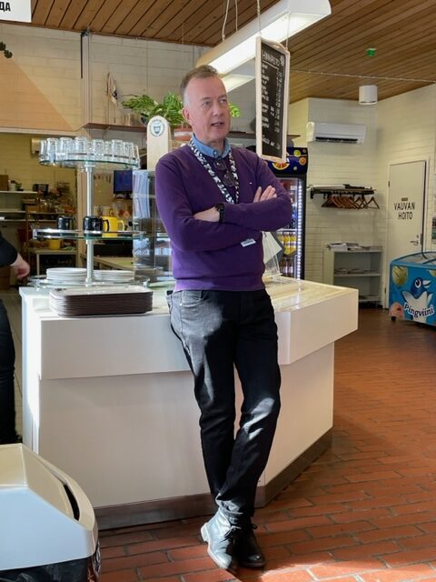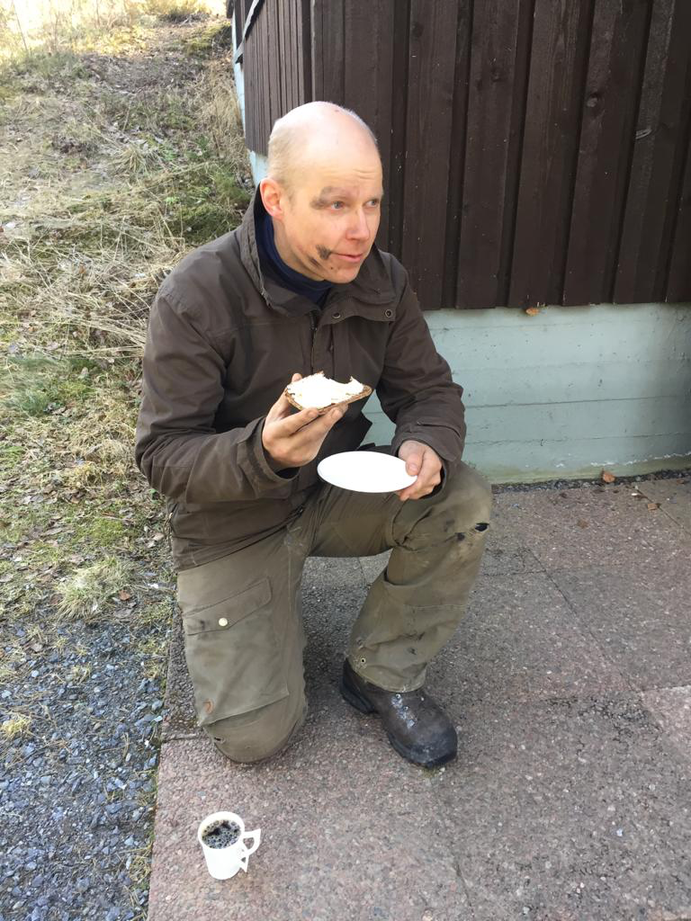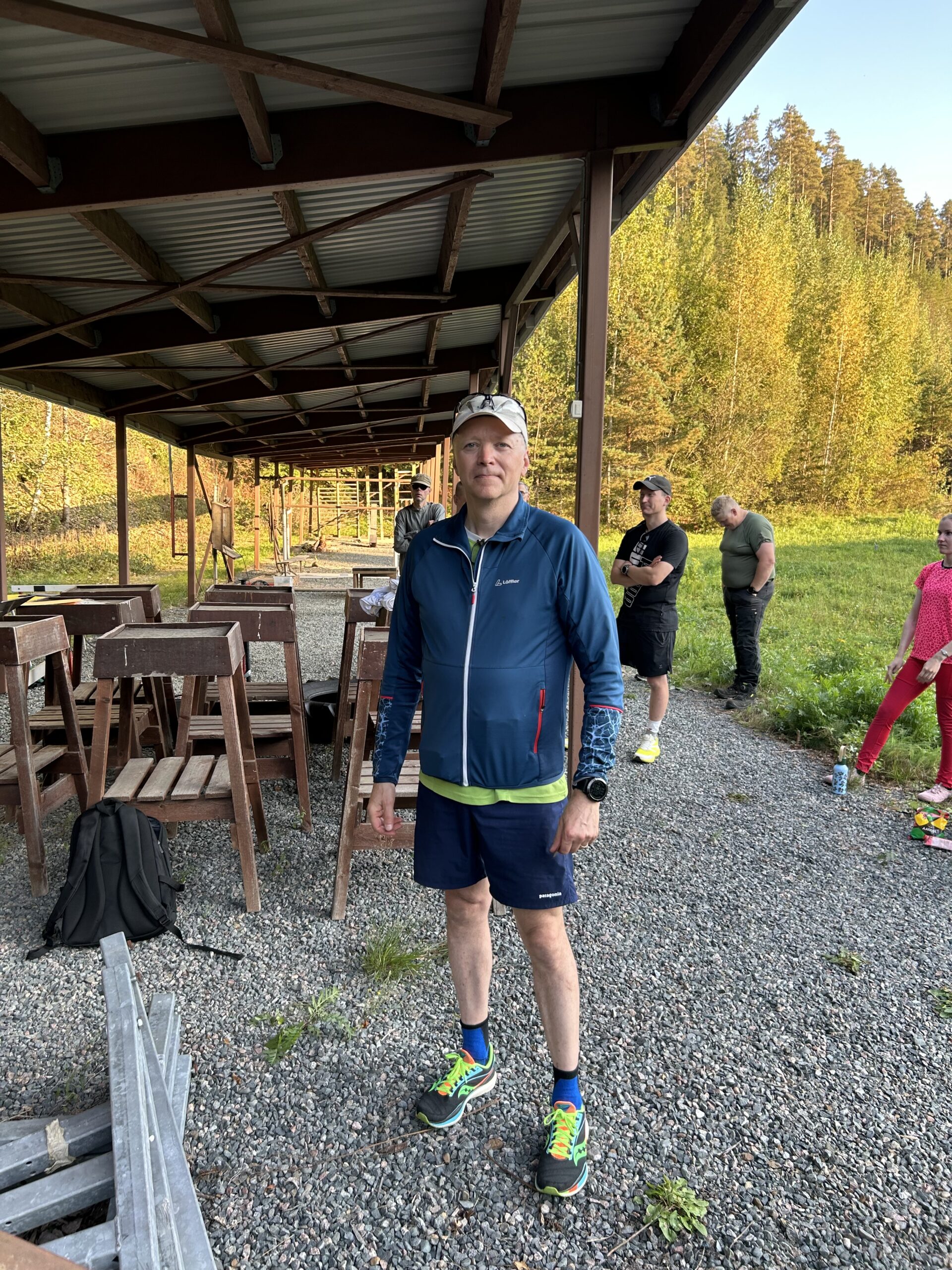 Puheenjohtaja Jari Rantasella näkyvissä työn jälkeä kasvoissa. Tässä Jari aloittelemassa evästaukoa.