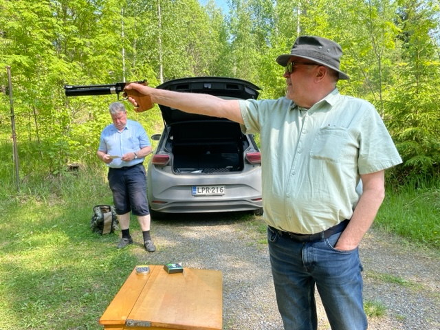 - Kuuma on, kiirettä pitää, mutta mukana pysytään, puuskahti niin tavanomaisessa kuin pika-ammunnassakin hopeaa ottanut yhdistyksen edellinen puheenjohtaja Ossi Reini, joka monivuotisen puheenjohtajakautensa jälkeen kertoi nyt voineensa keskittyä myös ampumaharjoitteluun.