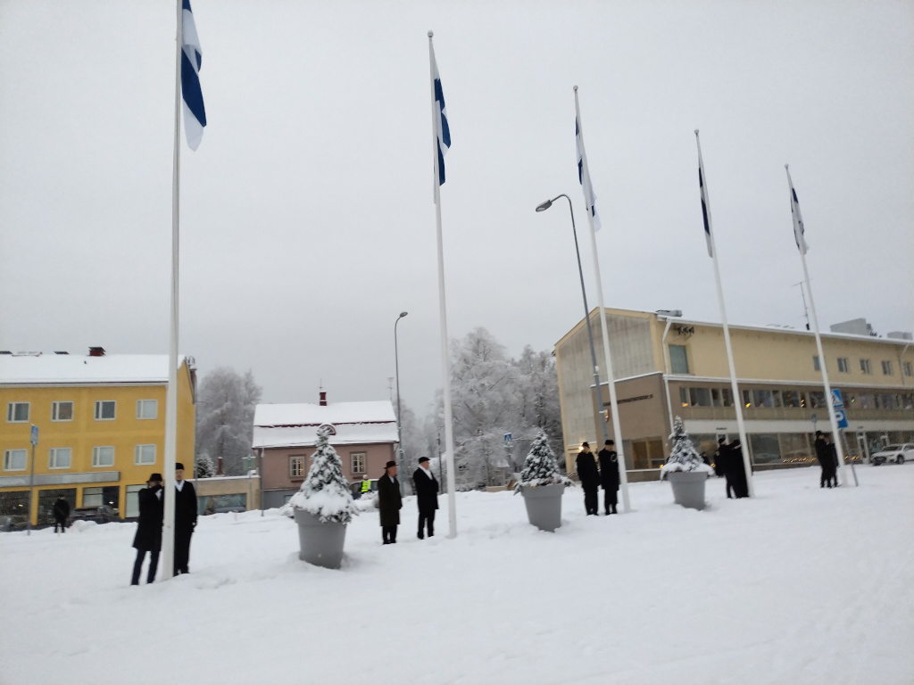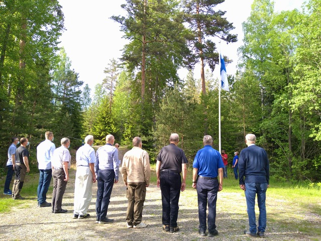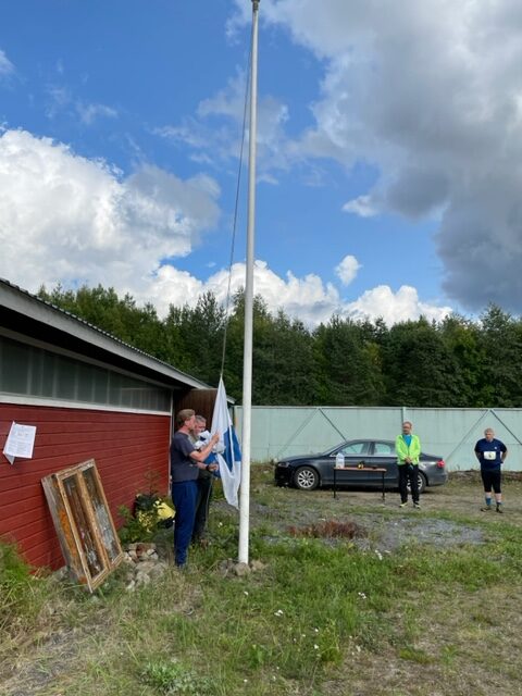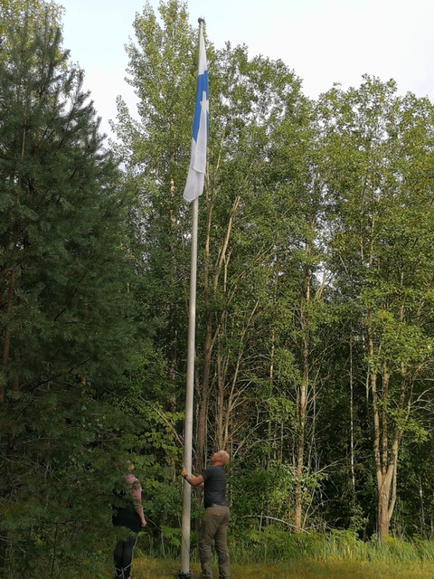 Tilaisuus alkoi lipunnostolla. Lippua nostamassa varapuheenjohtaja Petteri Jyrämö ja emeritus puheenjohtaja, Saajanmaja-vastaava Matti Koppanen.