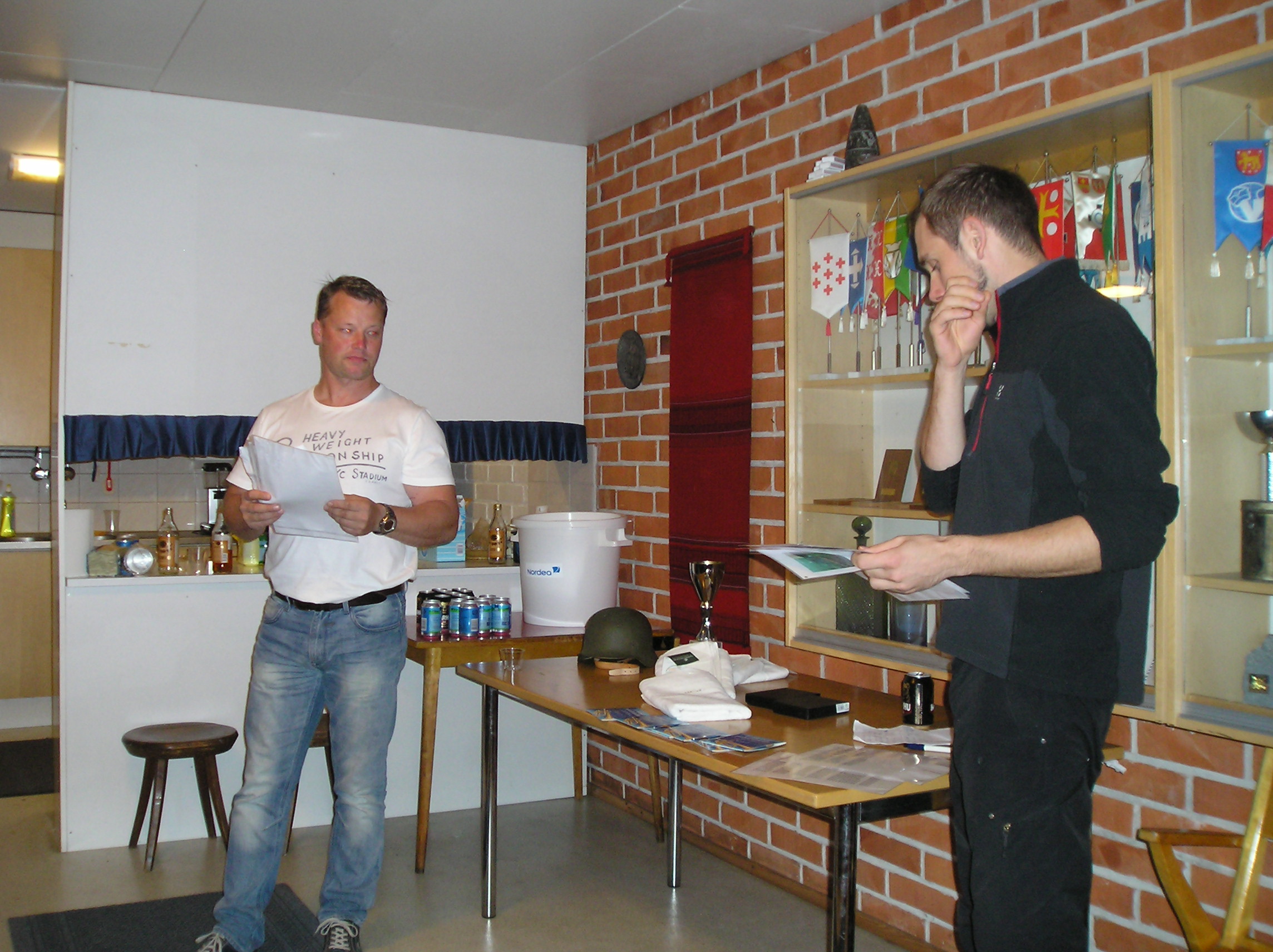 Osallistujilla oli runsaasti aikaa keskustella erilaisista asioista. Sirkesalon Tokkekin kertoi juttua heittämästään savukäsikranaatista varusmiesaikaisessa sotaharjoituksessa. Kranaatti pudotettiin ilmanvaihtoluukusta englantilaiseen ps-vaunuun, jossa oli puinen torni. Tämä ei erityisesti ollut harjoituksen tuomareita miellyttänyt! Tätä pohdittiin jollakin joukolla pöydän äärellä.