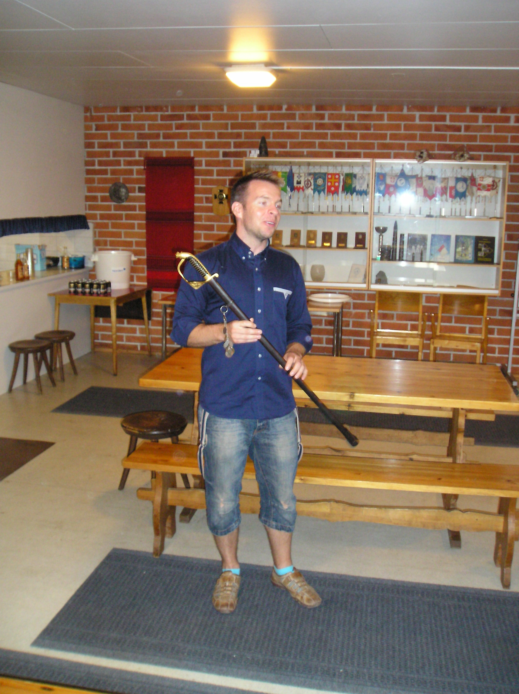 Mikko Kuitunen kävi noutamassa Majurin miekan. Takan reunuksella jo paikka katsottuna.