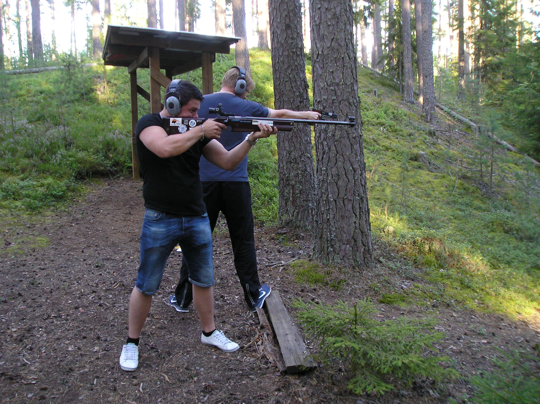 Suoritus käynnissä – tulta ristiin. Edessä Riku Koskinen ja takana Jorma Kylliäinen