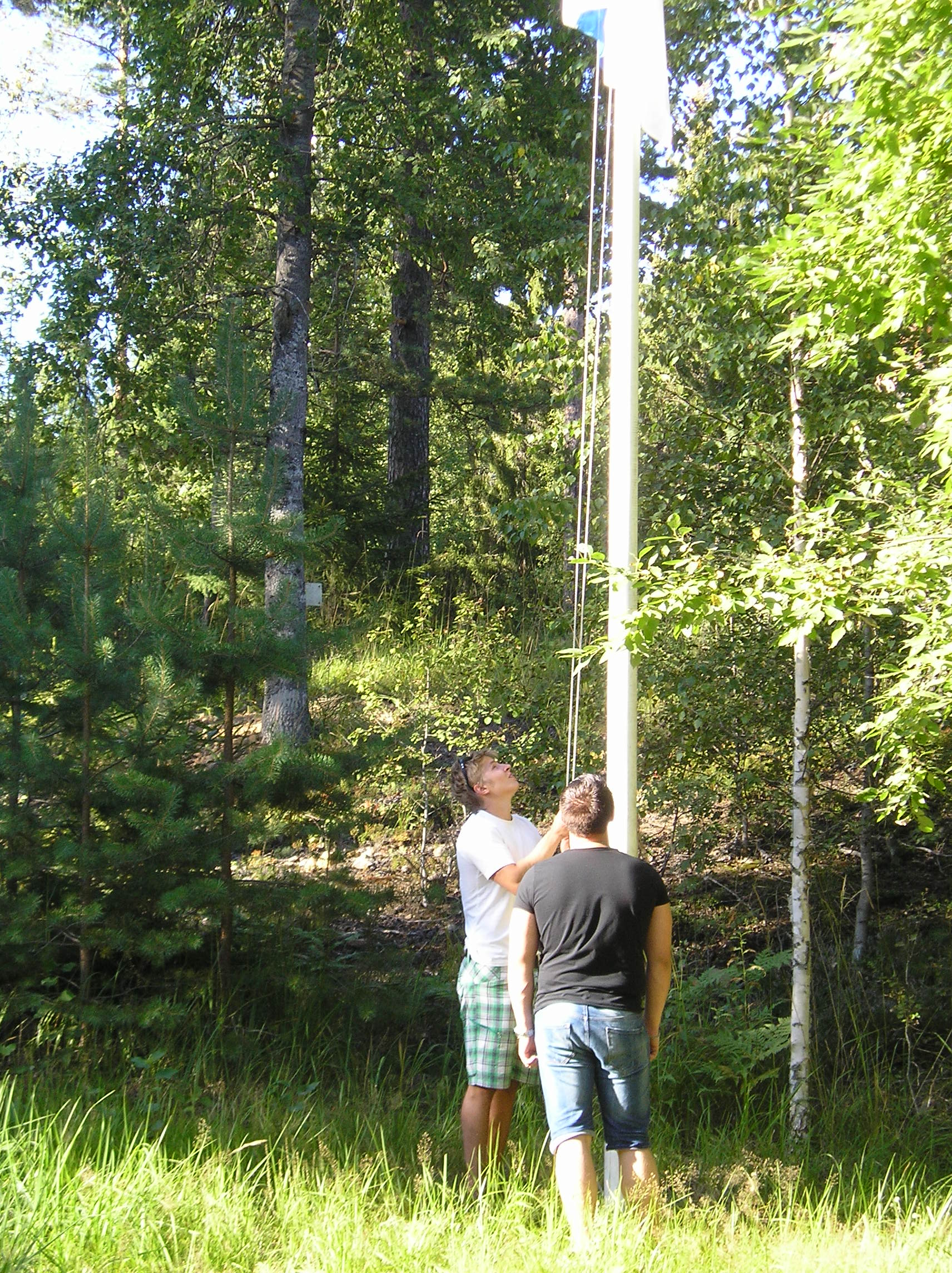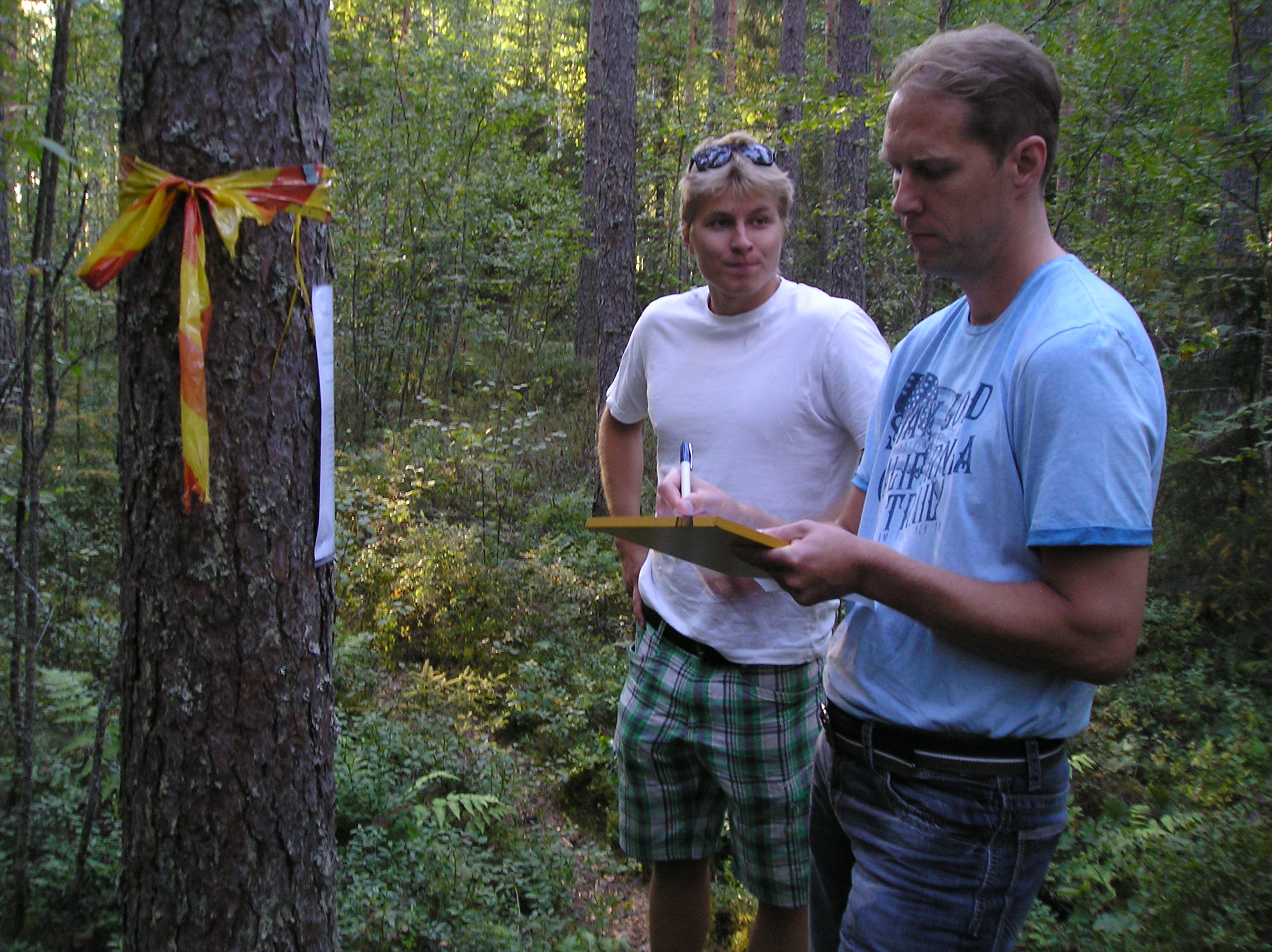 Pinta-alaa laskemassa vas. Jari Rantanen ja Jaakko Sirola. Rastilla käytettiin hyväksi myös Jarin pitkää vartaloa maassa maaten!