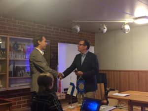 Puheenjohtaja Petri Airaksinen luovutti kerhon sihteeri Sanna Jaakolalle ”Maanpuolustus peruskalliomme” –standaarin aktiivisesta kerhotoiminnasta.