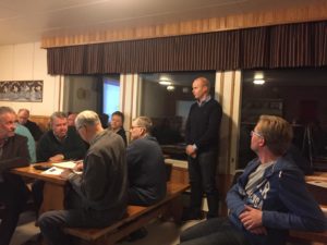 - Tuleva puheenjohtaja Jari Rantanen kiittämässä kokouksen osallistujia valinnastaan. Edessä oikealla varapuheenjohtajaksi valittu Petteri Jyrämö.