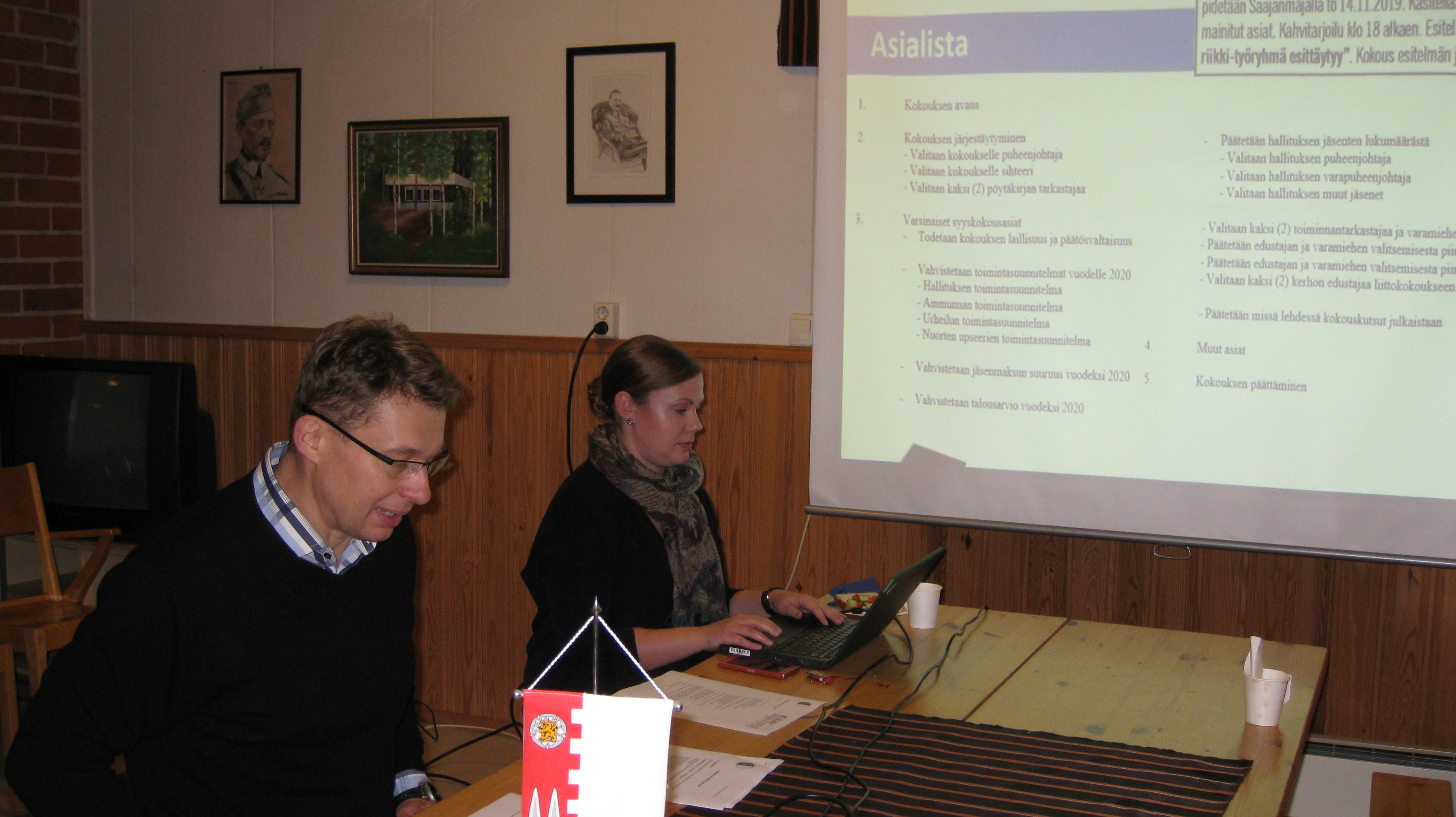 - Kokouksen puheenjohtaja Raimo Antila ja sihteeri Sanna Jaakola
