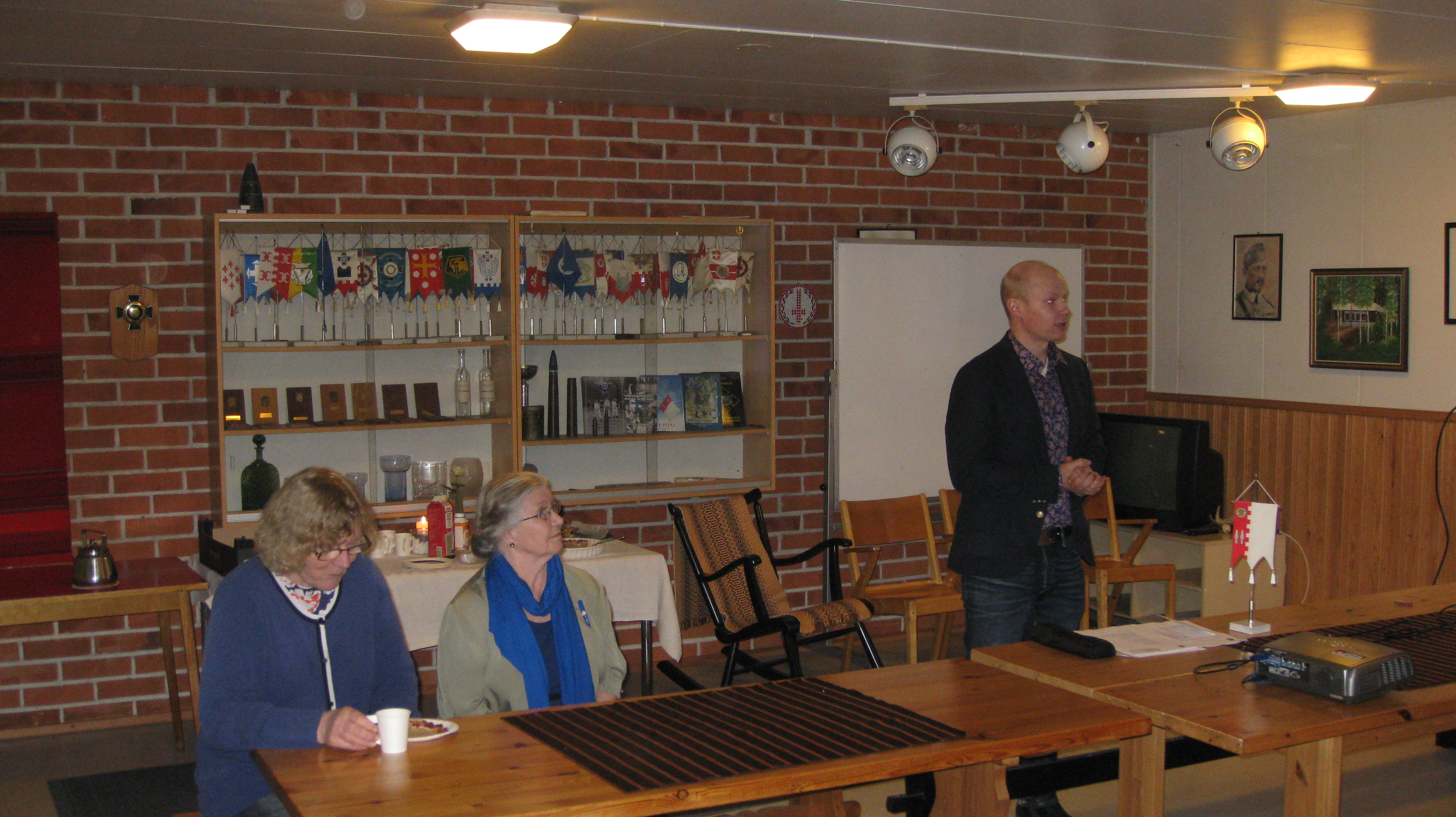 - Puheenjohtaja Jari avaamassa tilaisuutta. Istumassa vas.Hilkka Rekola ja Ulla Eerola.