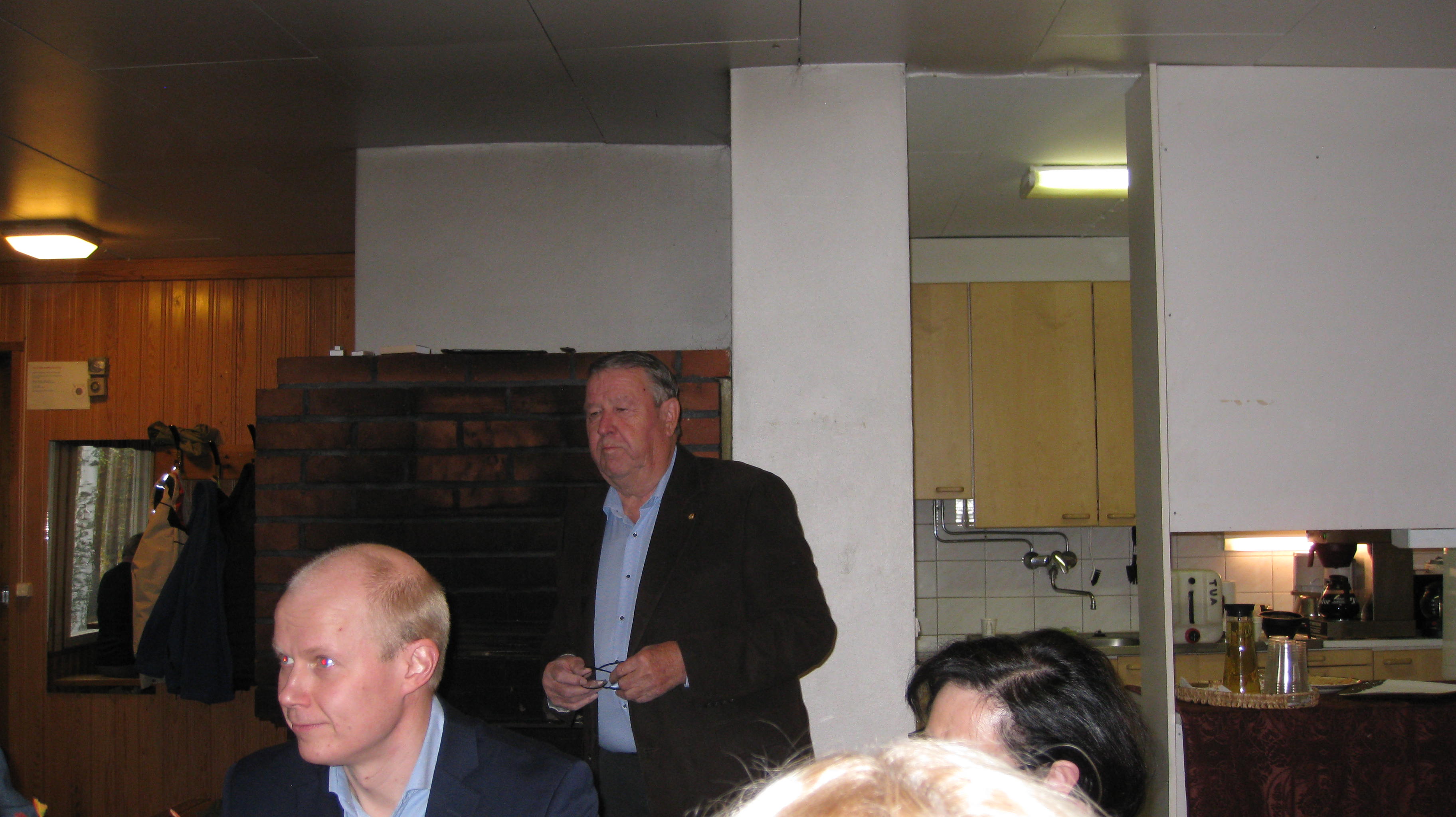 Tilaisuuteen oli kutsuttu ne henkilöt, jotka löytyivät Heleniuksen Rauno ”sotapäiväkirjasta”, remontin ja laiturin tekoon osallistuneet henkilöt. Ahosen Leevi kokkaili maittavat tarjoilut juomineen. Illan aikana suunniteltiin jo tulevia remonttikohteita mm. Saajanmajalle. Reserviläistoimintaa parhaimmillaan.