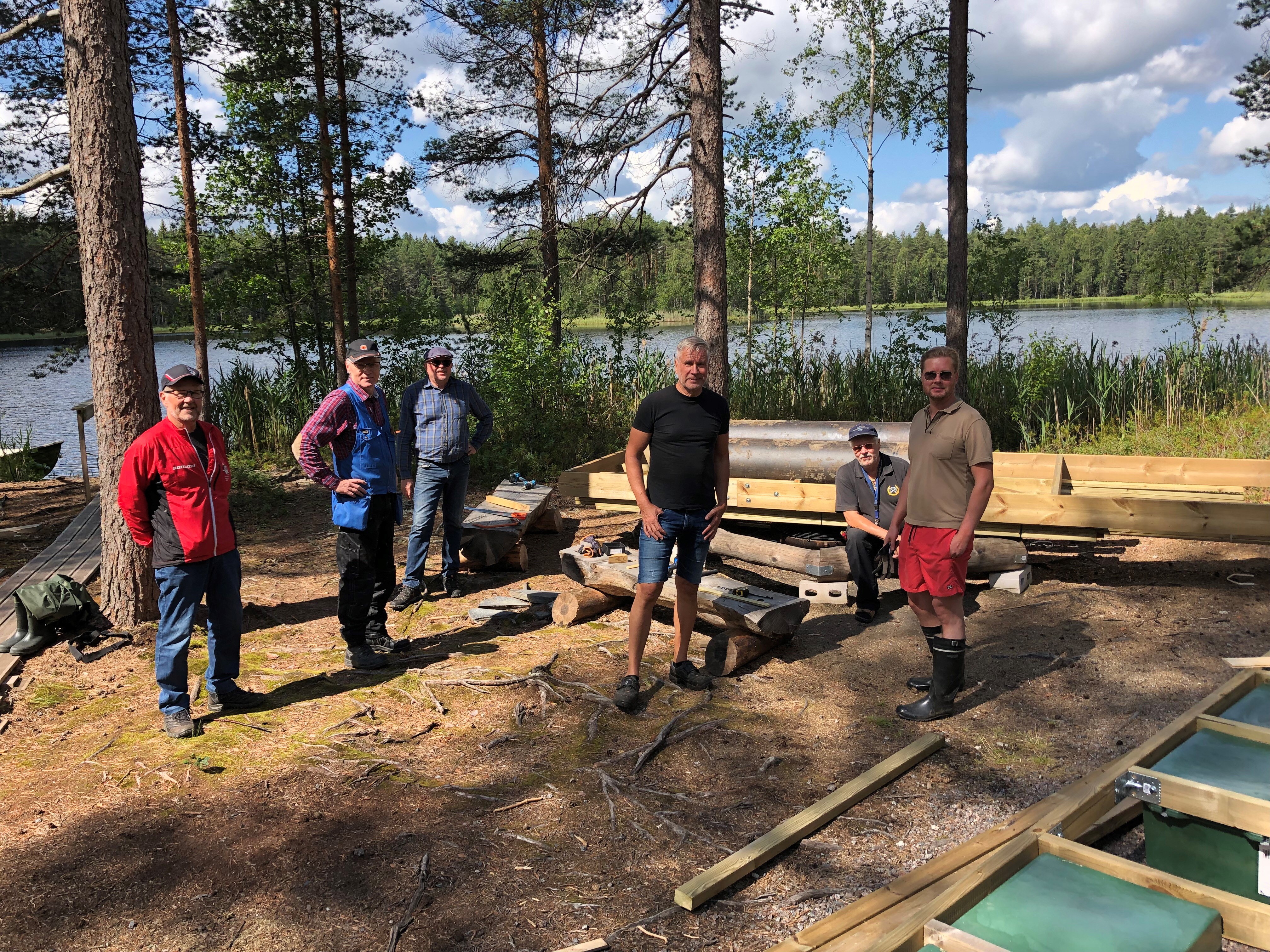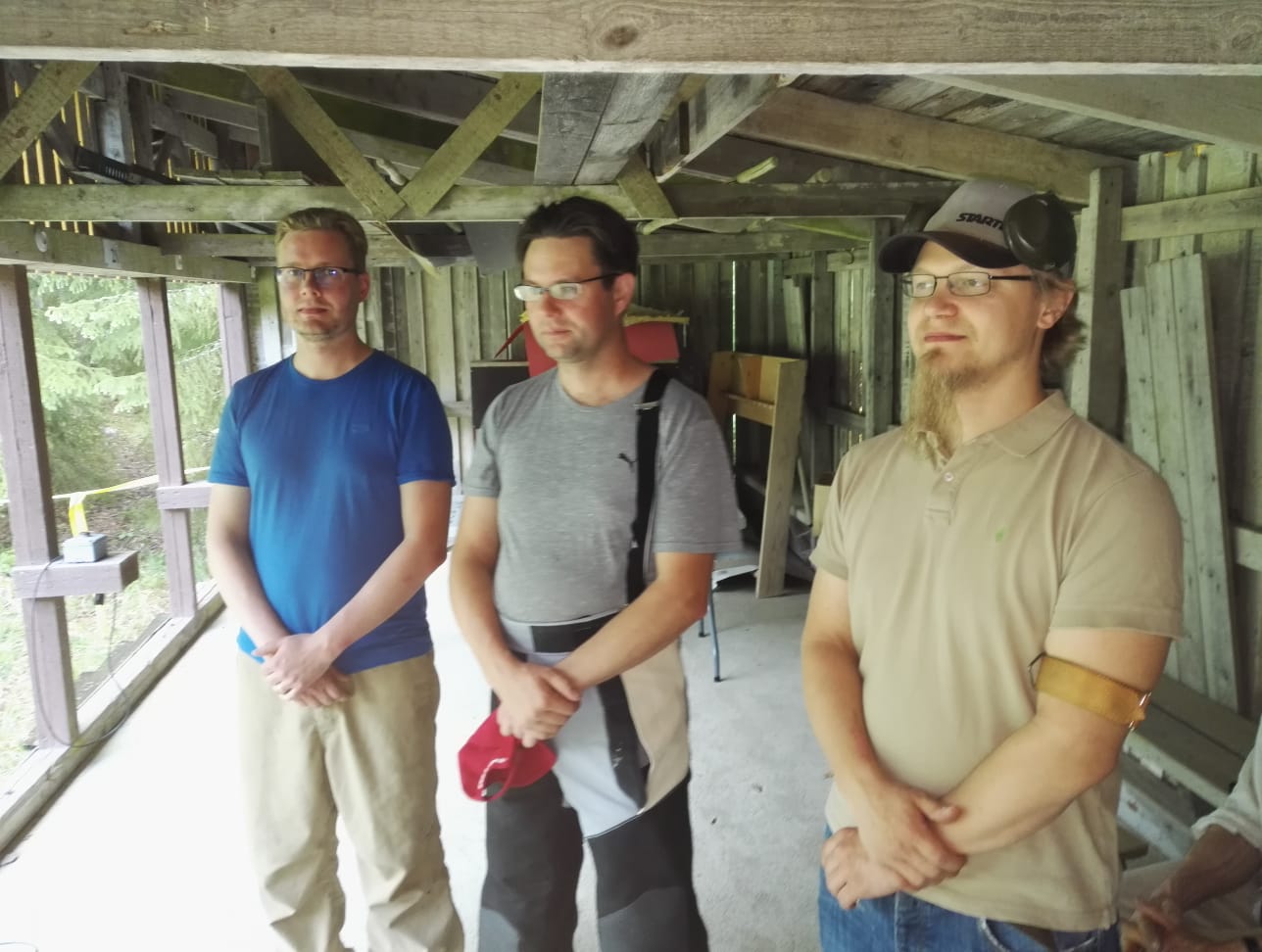 Museoaitan valmistumisen jälkeen Leevi, Rauno ja Reijo siirtyivät Saajanmajalle laiturin tekemiseen.