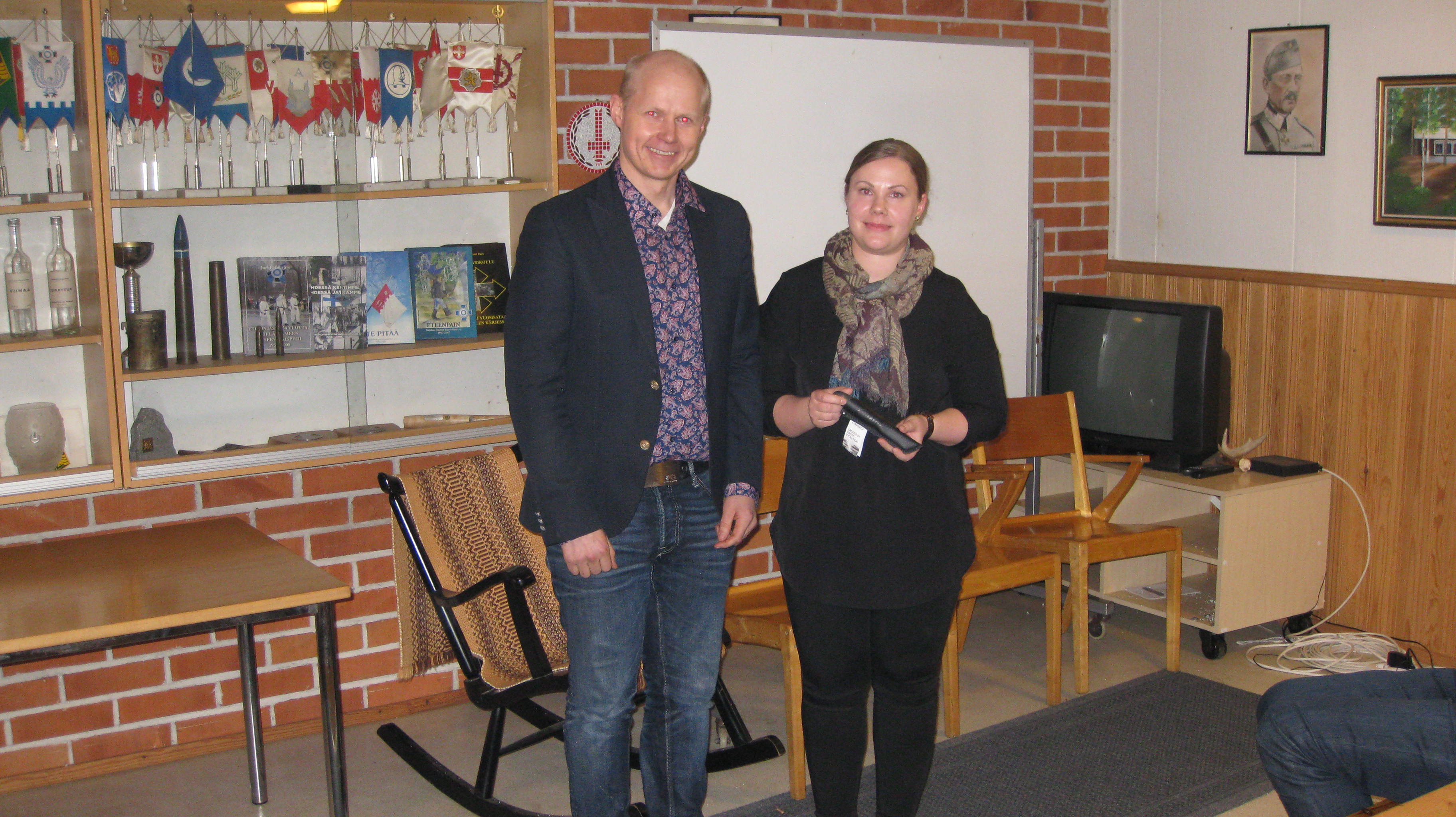 Puheenjohtaja Jari Rantanen palkitsi kuluvan vuoden ansiokkaasta toiminnasta ”Puheenjohtajan puukolla” kerhon sihteerin Sanna Jaakolan.