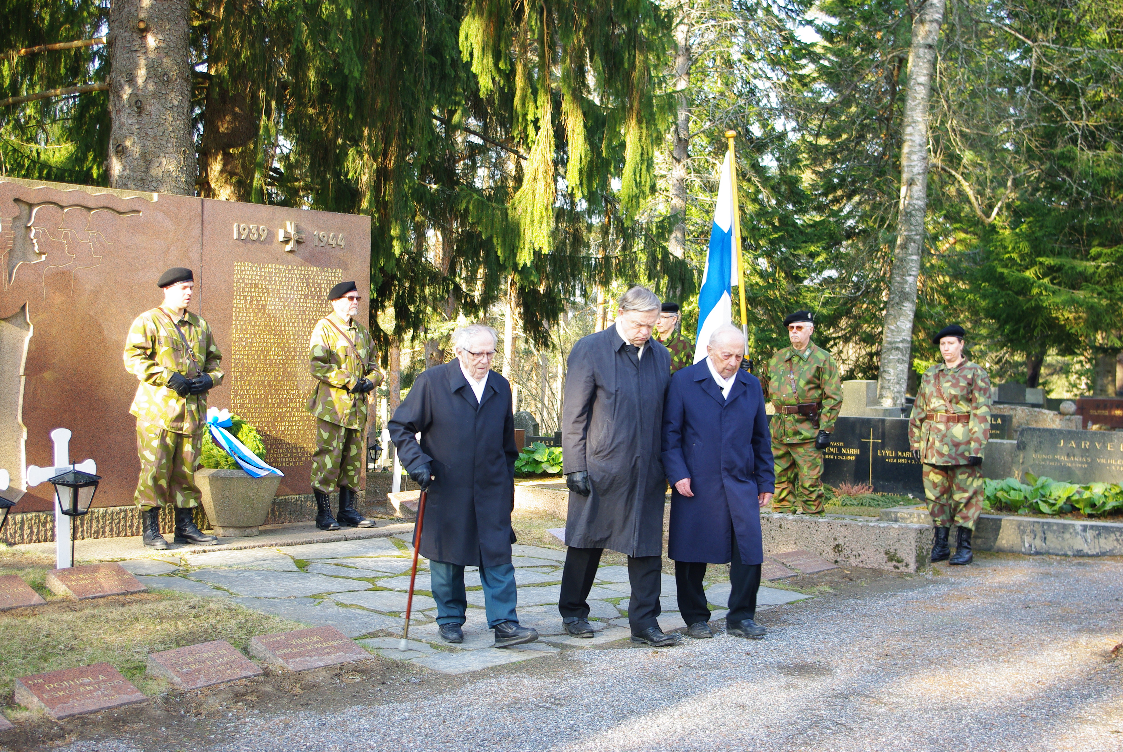Linkki Sankarihaudan seppeleen laskusta ja edellisten puheenjohtajien haudoilta kynttilöiden laskusta
