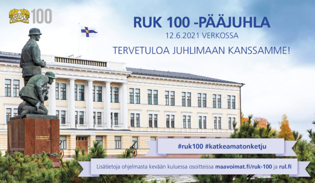 Reserviupseerikoulun 100-vuotisjuhla 12.6.2021 järjestettiin koronaviruksen takia ilman suurta yleisöä ja laajaa kutsuvierasjoukkoa verkkolähetyksenä.
