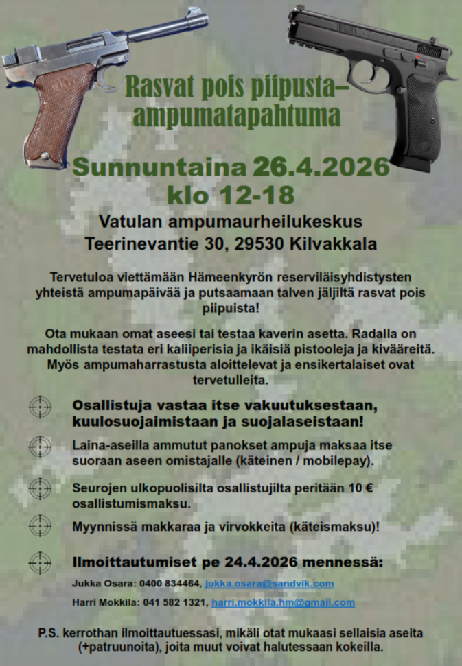 Rasvat pois piipusta -ampumatapahtuma su 26.4. klo 12-18