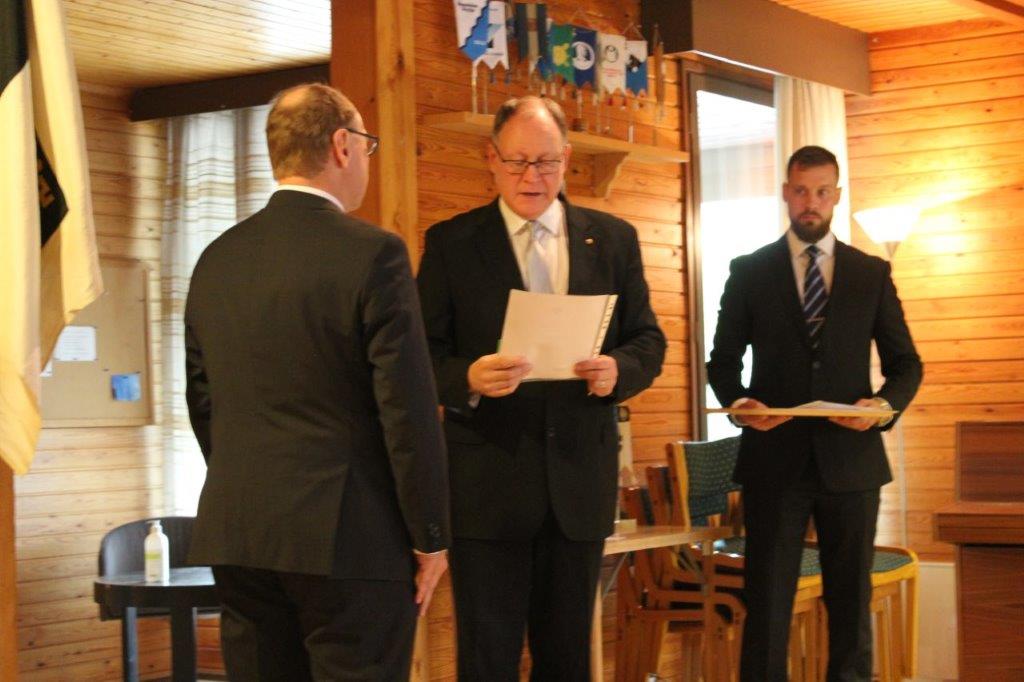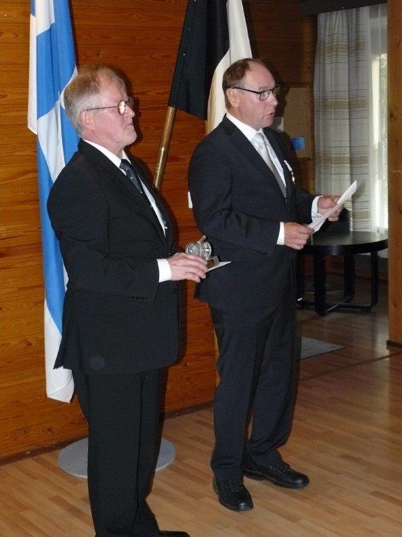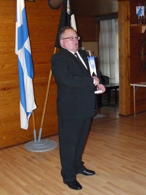 Piirin puheenjohtaja Pekka Mertakorpi toi 70 juhlavuottaan viettävän piirin terveiset tilaisuuteen.