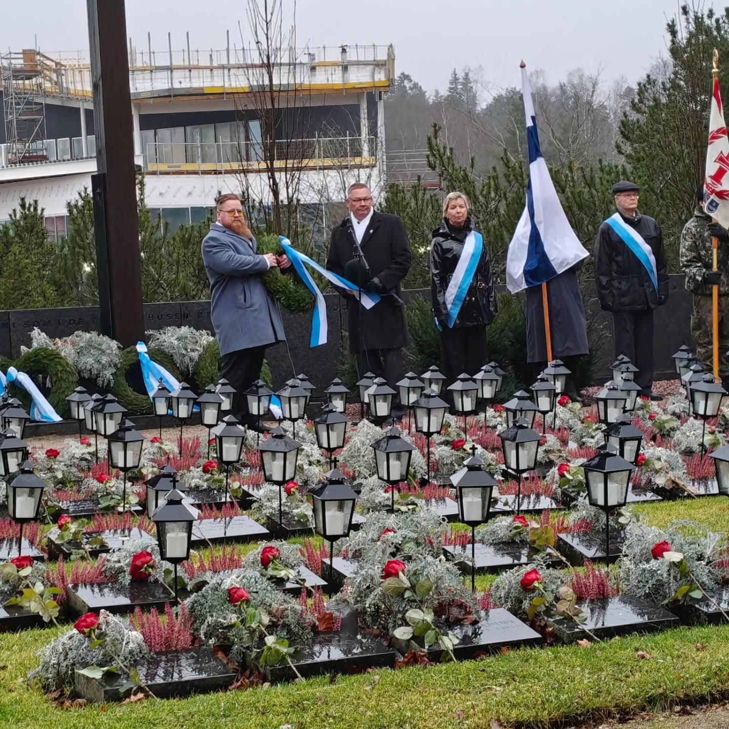 Itsenäisyyspäivän seppeleen laskun Kirkkonummen sankarihaudalle toimittivat tänä vuonna Henri Taussi ja Mats Malmström.
