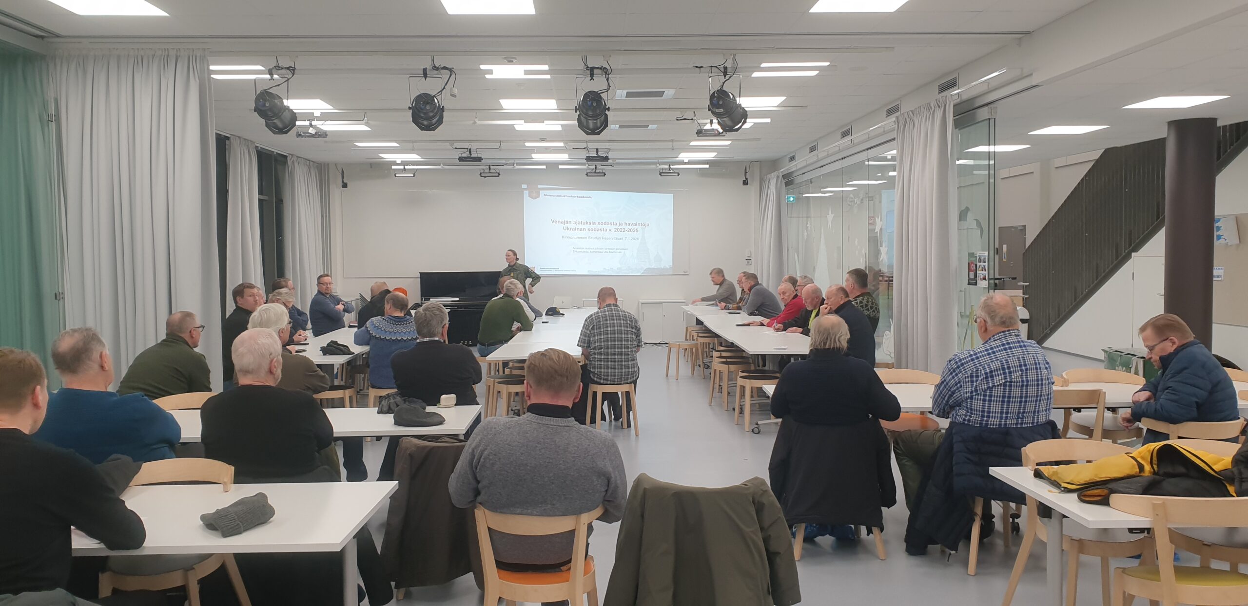 Vuoden 2026 ensimmäisessä kerhoillassa 7.1.2026 meillä oli vieraana Komentaja Ulla Murtomäki, joka alusti aiheesta ”Venäjän ajatuksia sodasta, Ukrainan sodan kaari ja havaintoja sodasta”. Meitä oli reilu 40 kuulijaa paikalla ja vierailijoita myös Lohjalta. Hyvää keskustelua virisi tärkeästä ja ajankohtaisesta aiheesta.