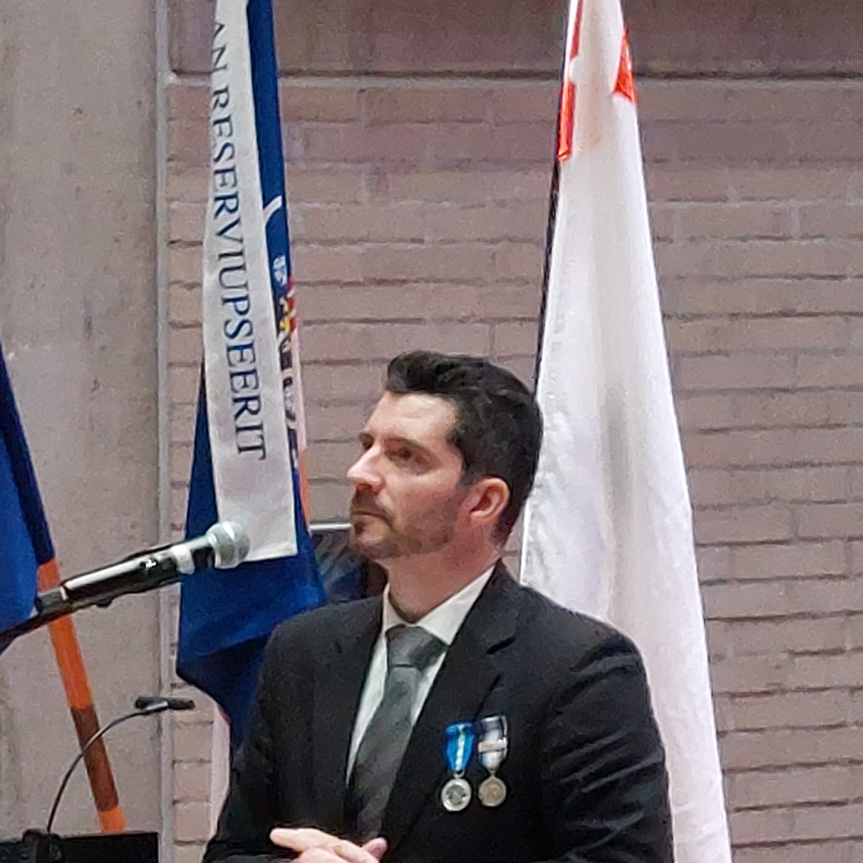 Maanpuolustuspäivä Tuusulassa 27.9.2025. Yhdistyksemme lippu oli mukana lippulinnassa paraatissa ja ohimarssissa. Puheenjohtajamme Tatu Pätiälä osallistui maanpuolustusjuhlaan ja toi sijaisena Reserviupseeriliiton terveiset juhlaväelle. (kuva)