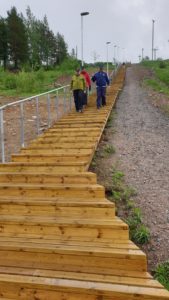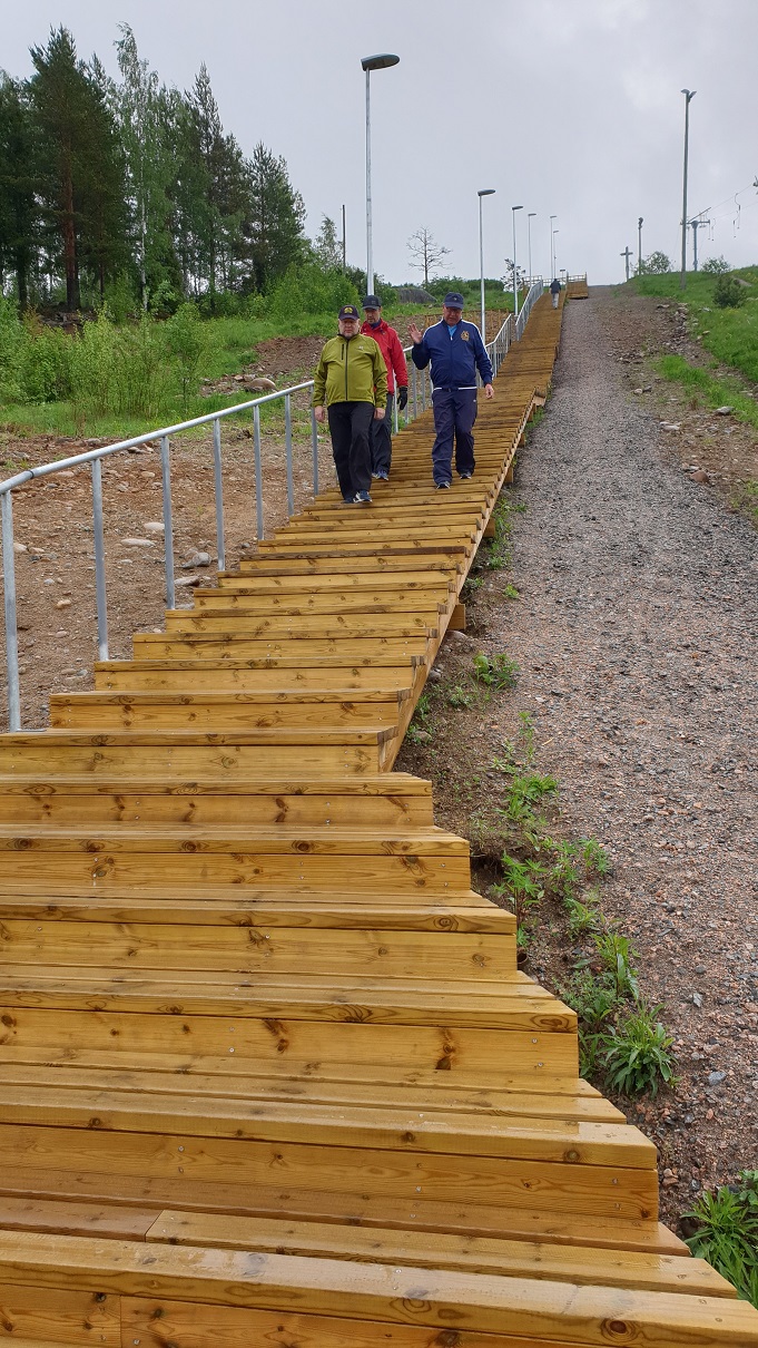 5 reserviläistä käytti tilaisuutta hyväksi ja oli tullut paikalle tutustumaan Klaukkalan Tornimäen uusiin kuntoportaisiin.