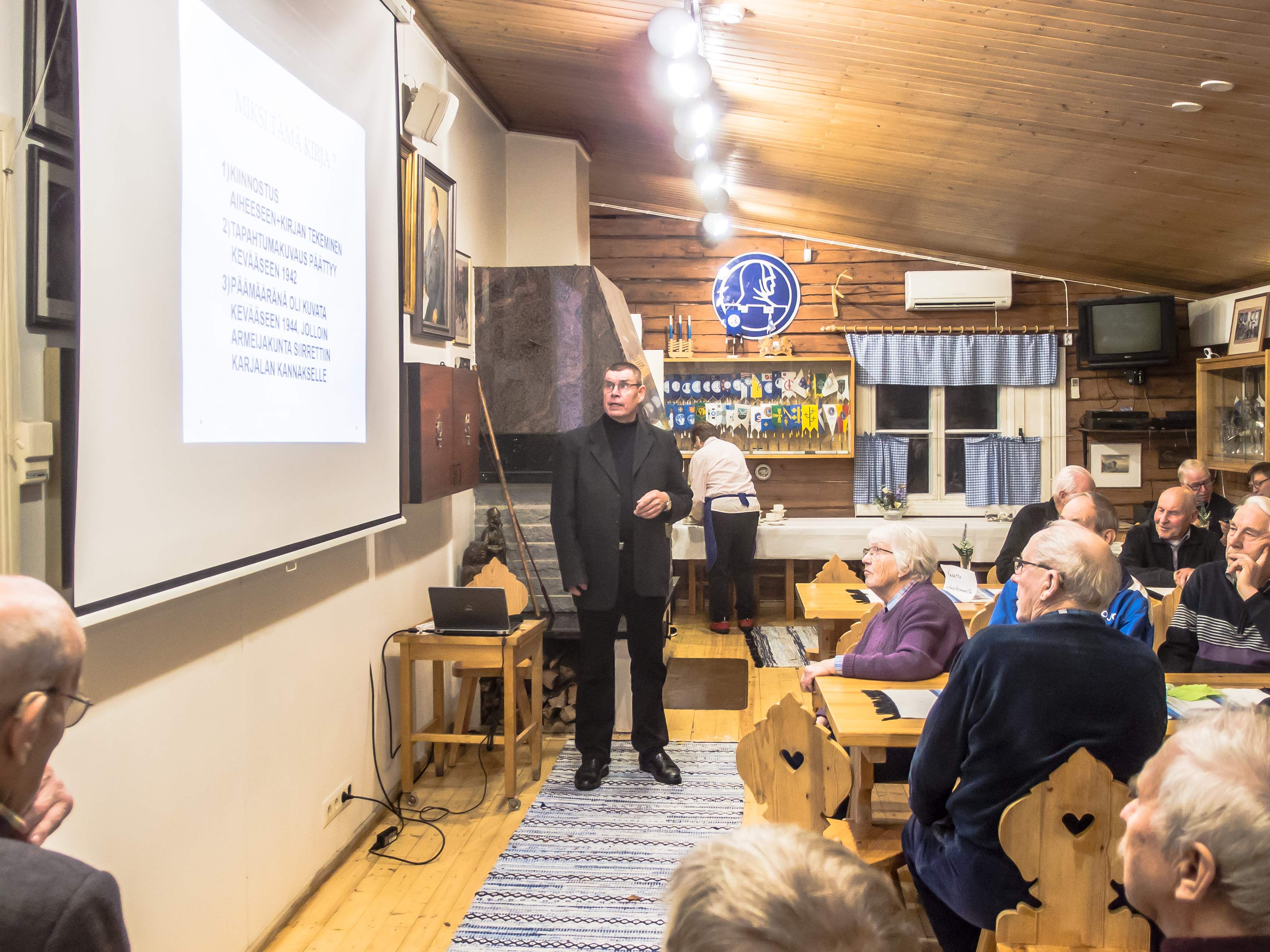 Loimaan Reserviupseerit ry:n jäsen, metsämaalaislähtöinen, Helsingissä asuva eversti evp. Ari Rautala esitteli Veteraanituvalla 23.10.2018 uusimman kirjansa ”Aseveljet korpisodassa – Siilasvuon III armeijakunta Vienassa 1941-1944”. Kirja on suora jatkumo Rautalan aikaisemmin kirjoittamiin sotahistoriaa koskeviin kirjoihin. Uusin kirja valottaa saksalaisten ja suomalaisten joukkojen vaiheita ja yhteistyötä jatkosodan Vienassa. Kirjassa on runsaat 400 sivua. Veteraanitupa oli jälleen lähes täysi, paikalla oli runsaat 60 kiinnostunutta.