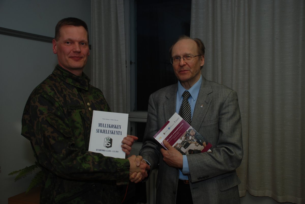 - Kevätkokouksen 2013 esitelmöitsijä evl Hyytiäinen palkitaan Myllykosken Suojeluskunnan historiikilla