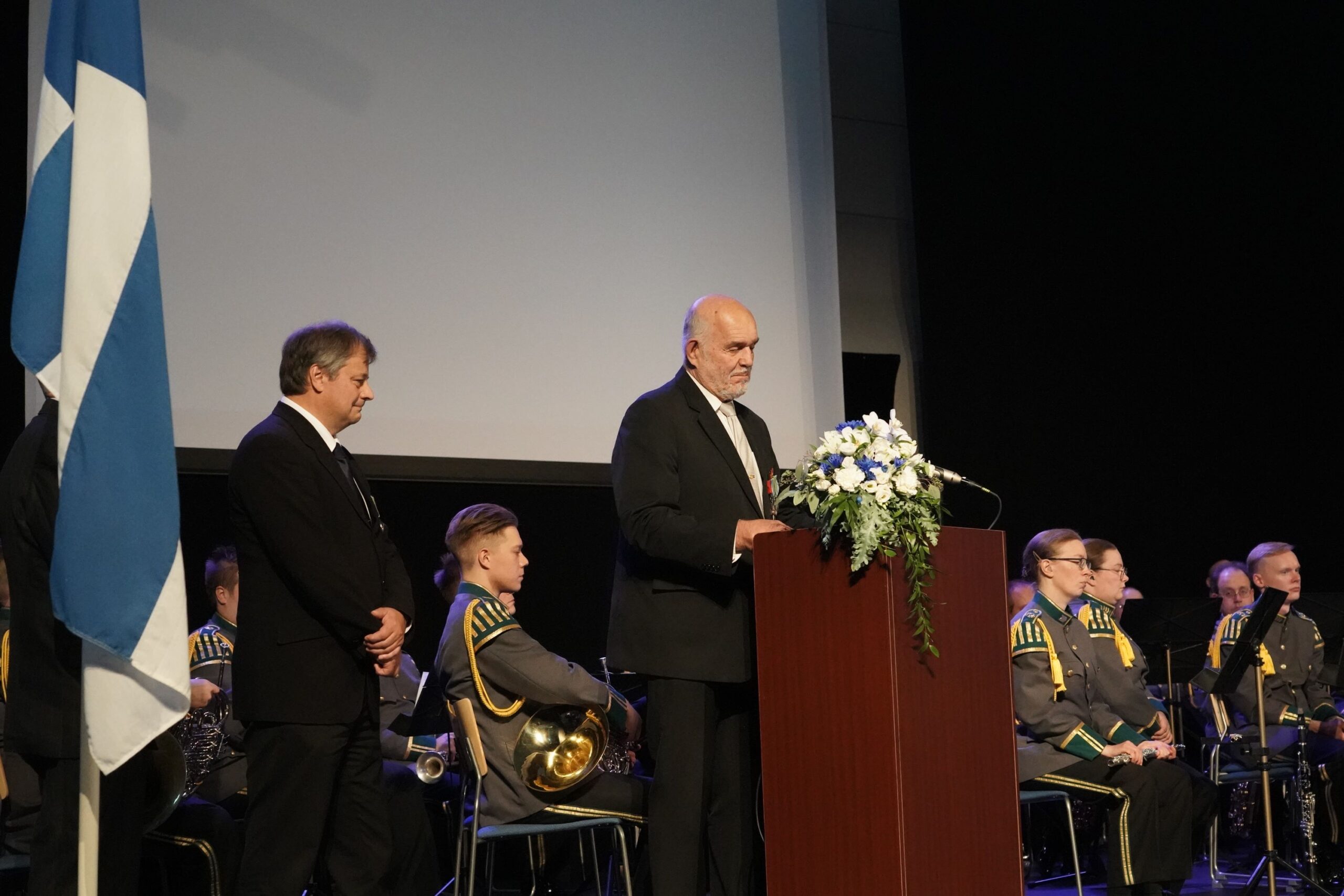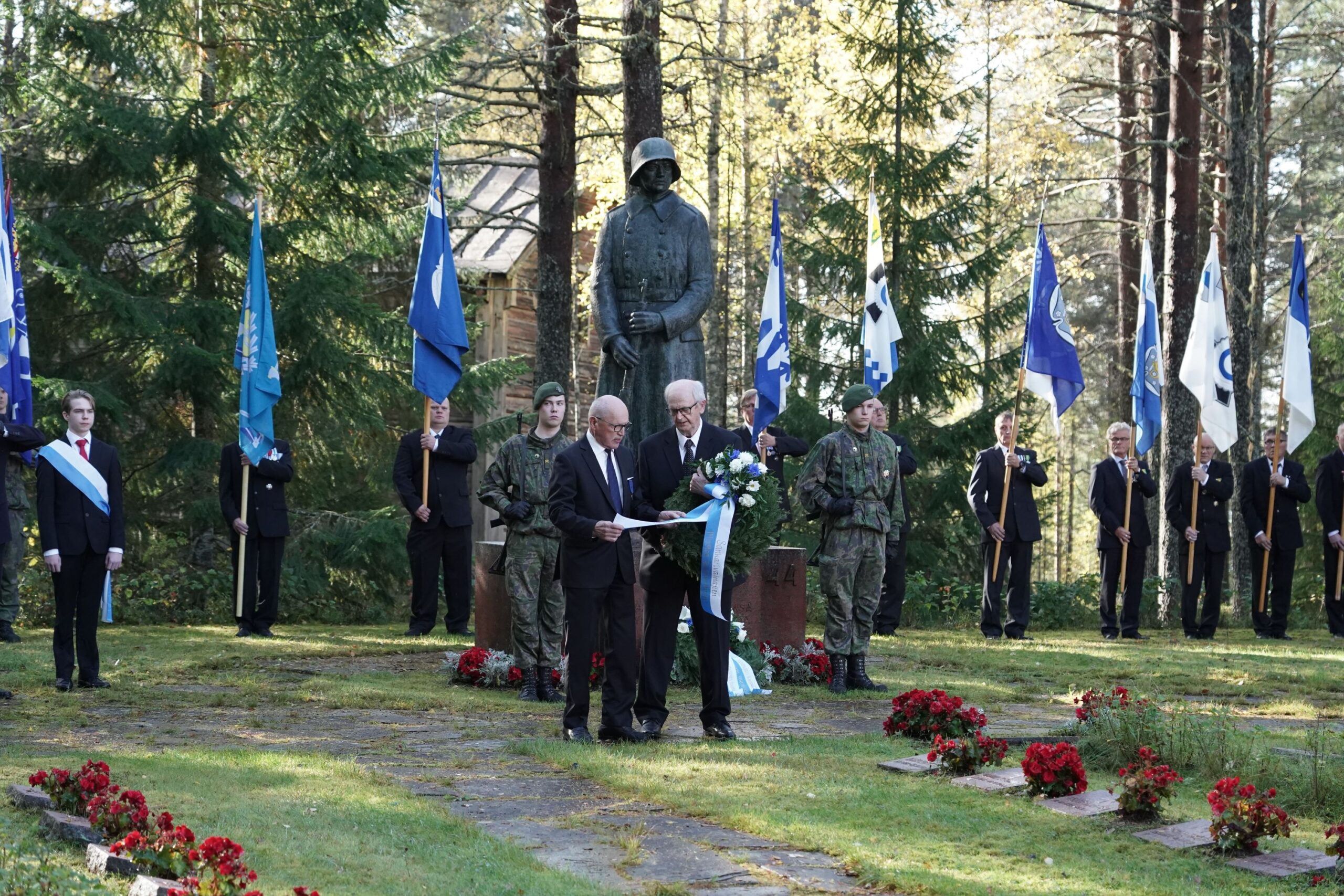 Suomen lippu ja seppelten laskijat