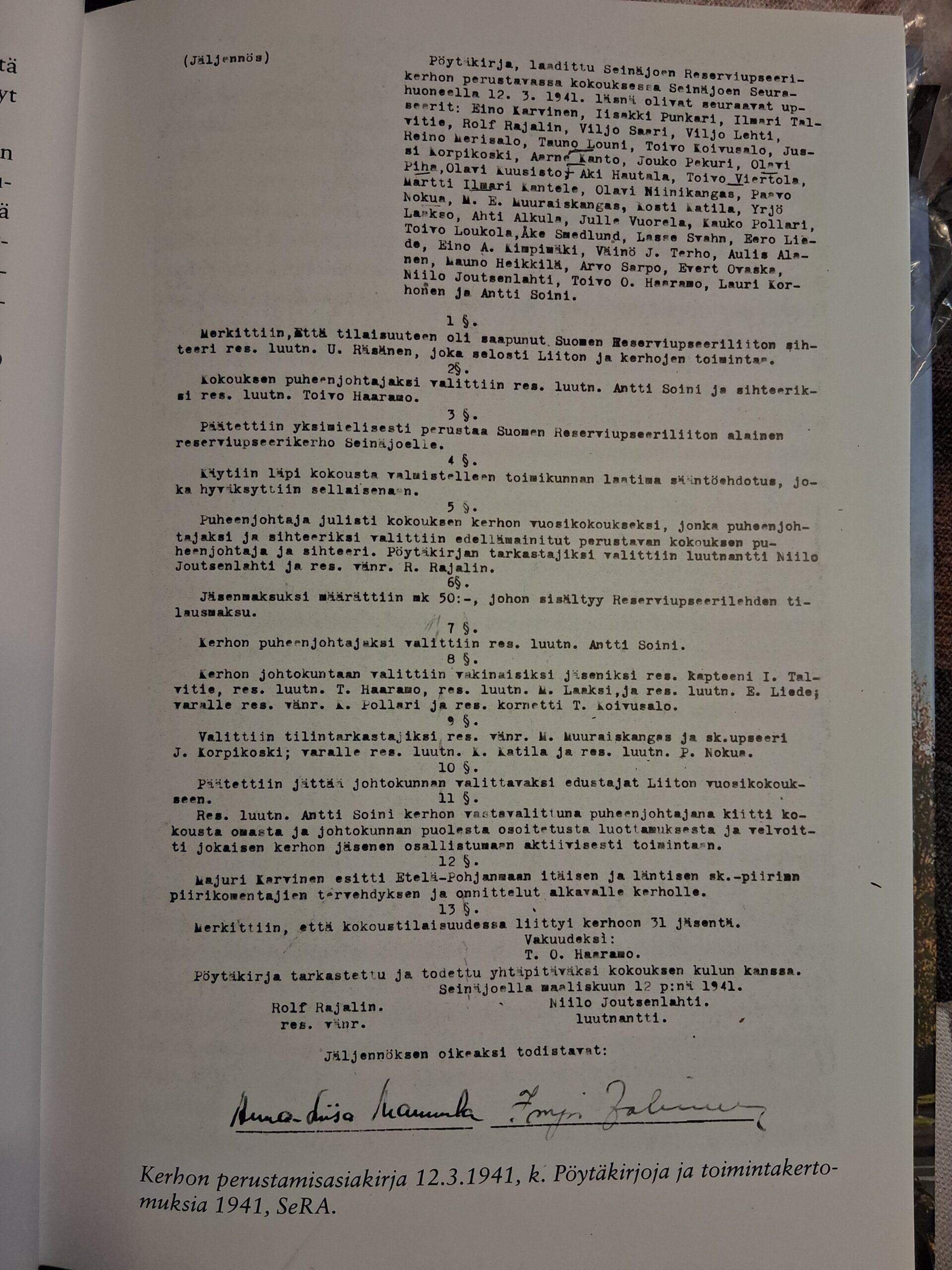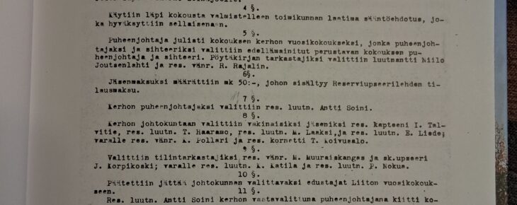Seinäjoen Reserviupseerikerhon syyskokous pidettiin 19.11 Nurmon kirjaston kokoustiloissa. Kerhon perustamis asiakirja on vuodelta 1941. Joten syyskokouksia kerho on pitänyt todennäköisesti 70-80 (sota ja sodanjälkeinen aika vaikutti kerhon toimintaan).Syyskokouksessa valittiin ensi vuoden hallitus. Puheenjohtajana jatkaa Mika Lammila ( ylil res) ja varapuheenjohtajana Jukka Sysilampi (Maj res). Muun hallituksen muodostavat sihteeri Janne Jousmäki (vän res), Heikki Vehkaoja (kapt res), Jussi Mylläri (vän res), Seppo Yli-Panula (kapt res), Jussi Harjunpää (ylil res) ja Joonas Marttila (vän res).Puheenjohtaja Mika Lammila esitteli kerhon toimintasuunnitelman, jossa kerrottiin kerhon vuoden 2026 tapahtumista. Tapahtuman rungon muodostavat kunniavartiot, toimintapäivät ja varusmiesinfot. Kaikki edellä mainitut järjestetään yhdessä Seinäjoen Reserviläisten kanssa. Samoin käytiin läpi talousarvio. Molemmat hyväksyttiin kokouksen toimesta pienin täydennyksin.