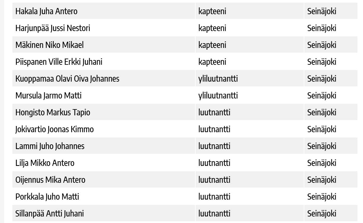 Kyselyn mukaan Seinäjoelta suunta tuntui olevan Kainuun Prikaatiin