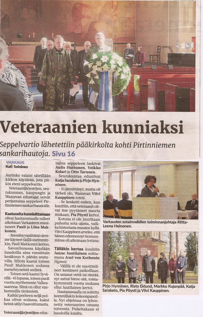 Kansallinen veteraanipäivä Varkaudessa 2018. Warkauden Lehti 28.4.2018.
