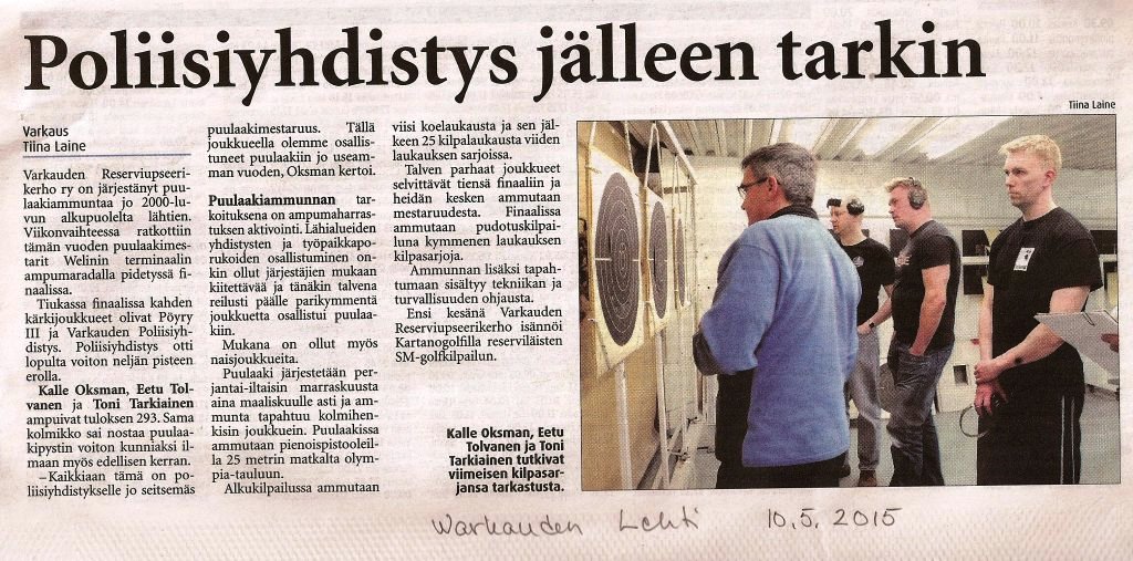 Puulaakiammunnan finaalin tulokset Warkauden Lehdessä 10.5.2015.