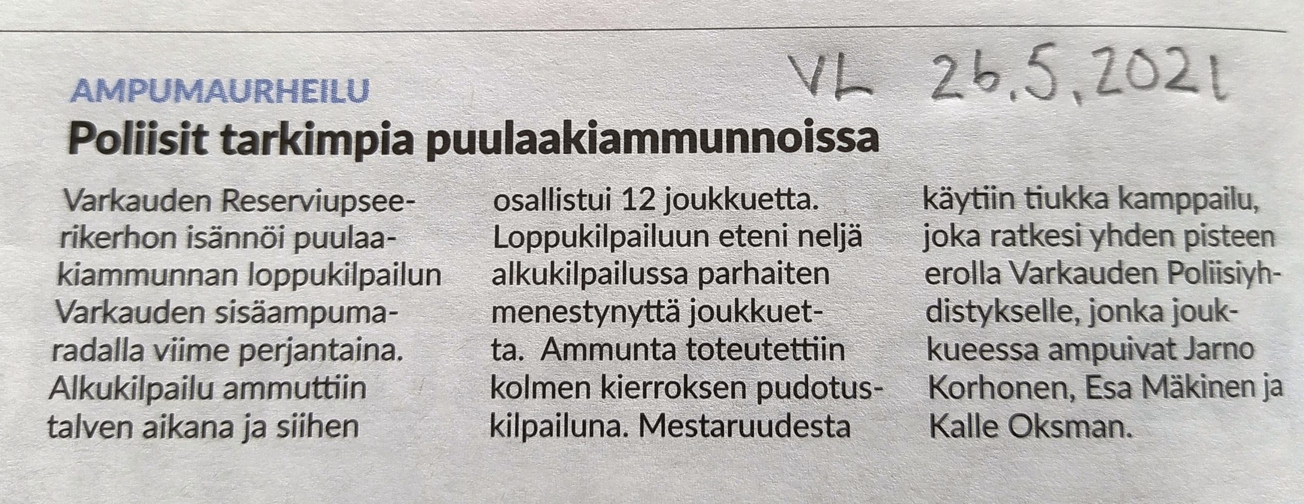 Puulaakiammunnan finaali Warkauden Lehdessä 26.5.2021.