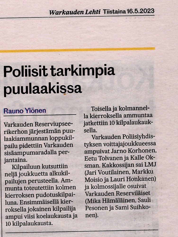 Puulaakiammunnan finaali Warkauden Lehdessä 16.5.2023.